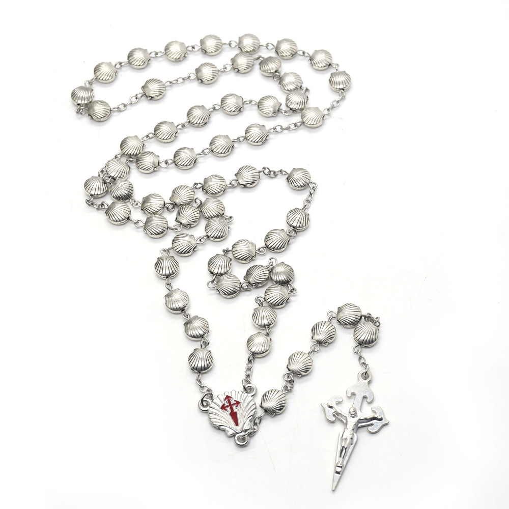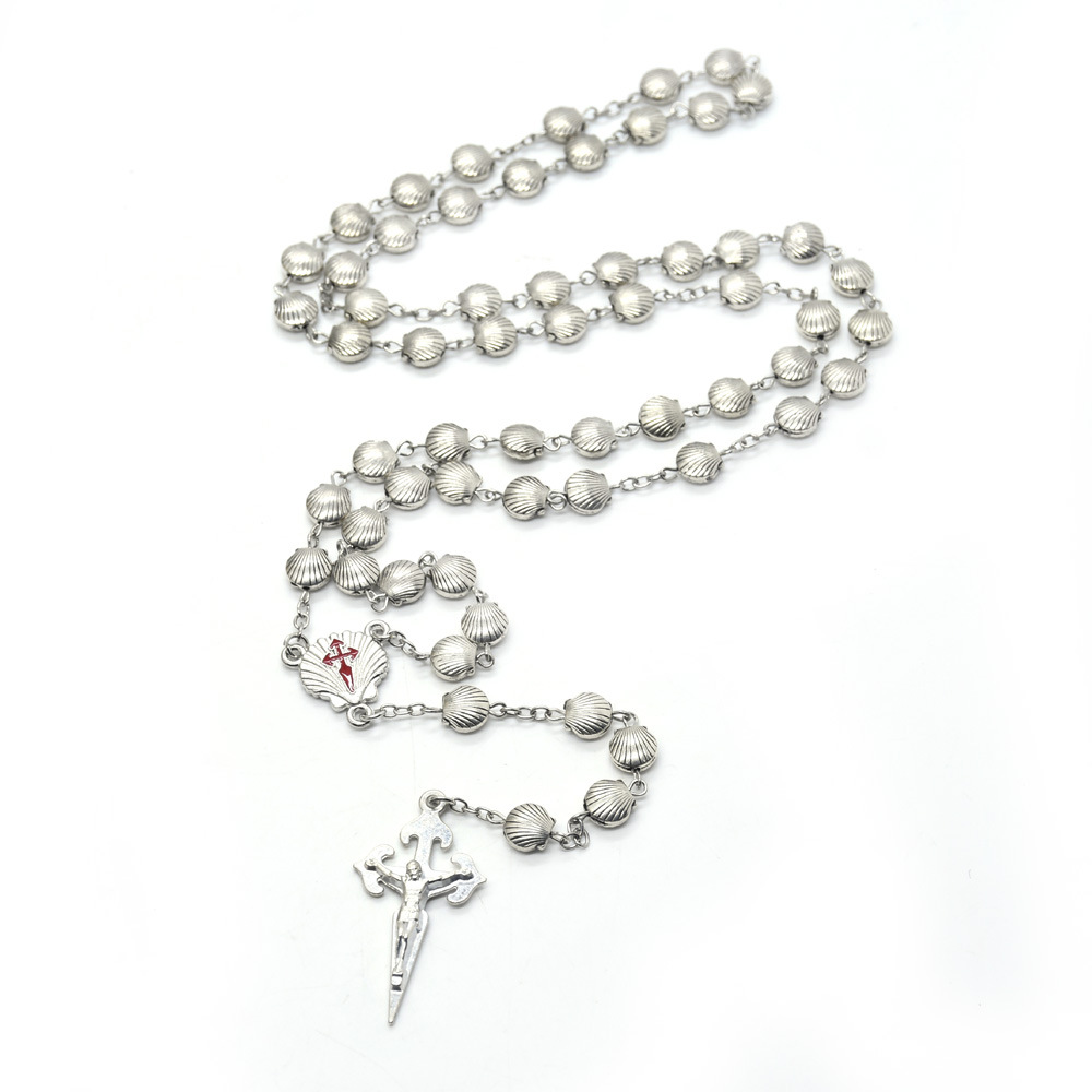 Collier de chapelet, alliage de zinc, croix, Placage, bijoux de mode & émail, couleurs mélangées, 8mm, Longueur 60 cm, Vendu par PC