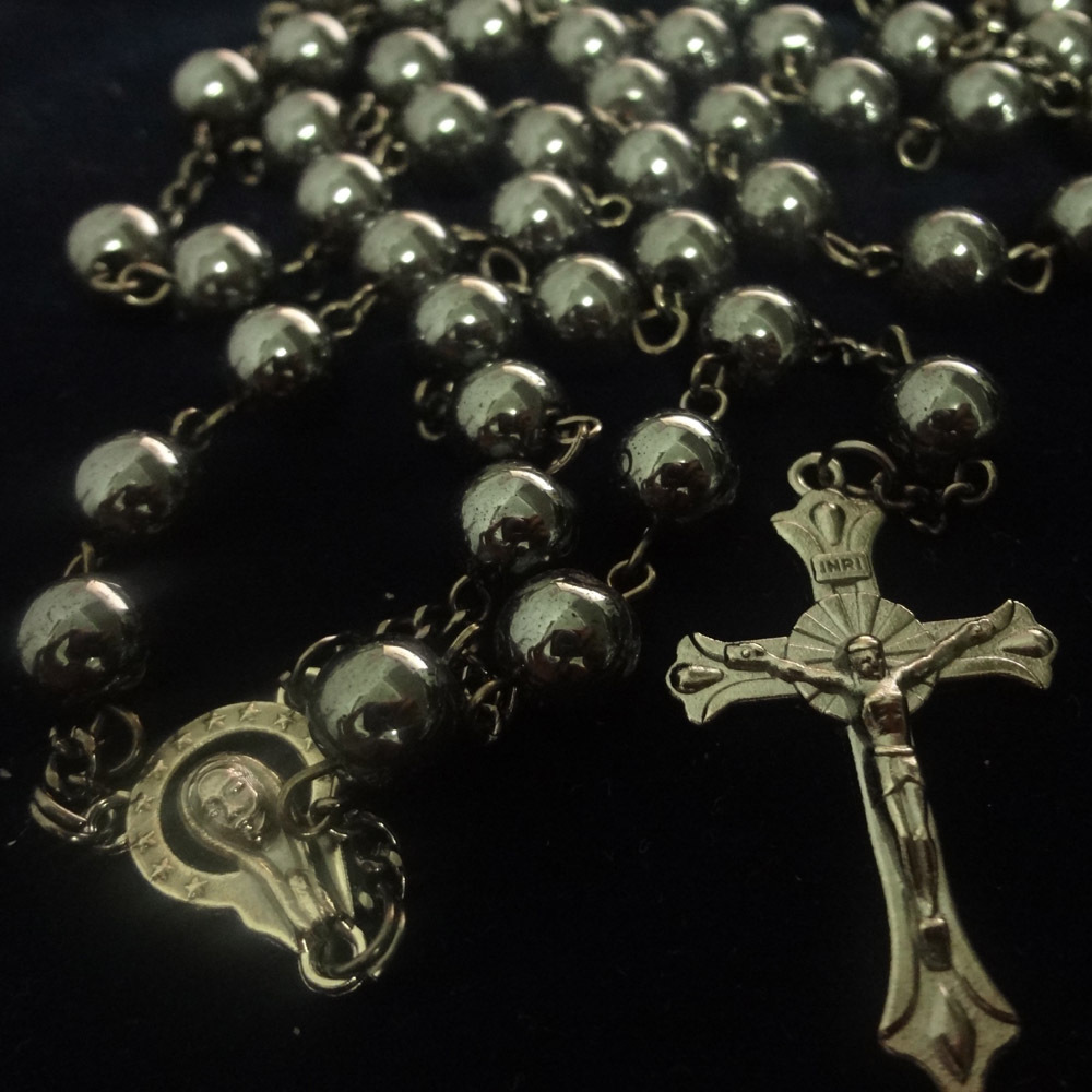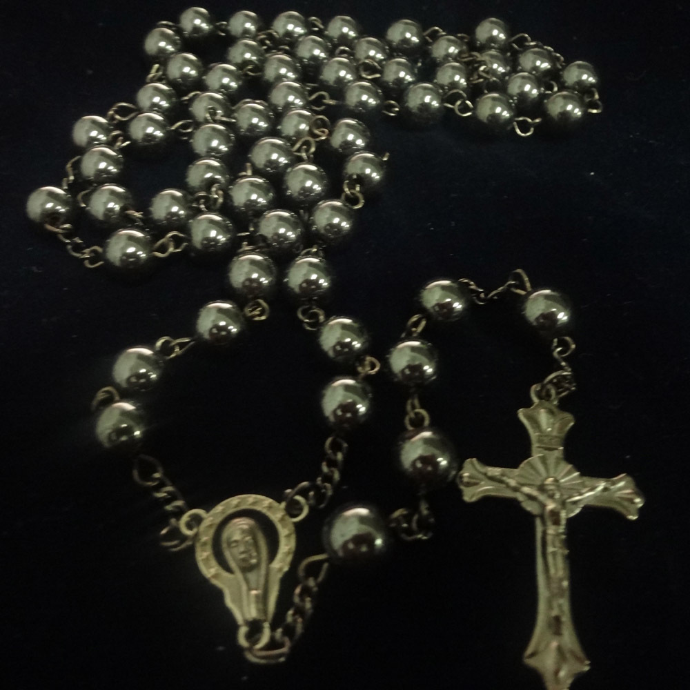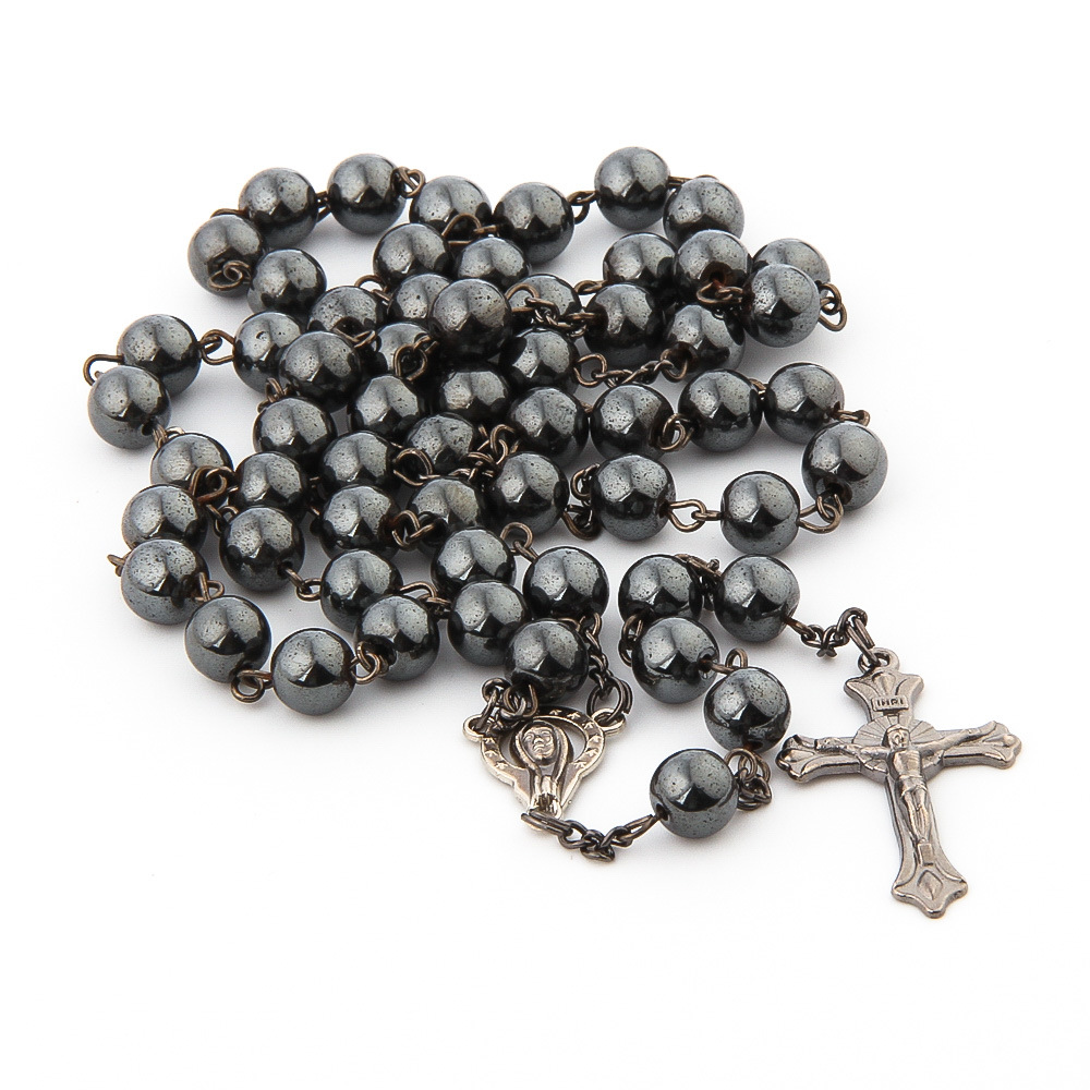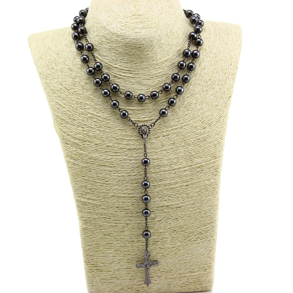 Collier de chapelet, alliage de zinc, avec hématite non magnétique, croix, Placage, bijoux de mode, couleurs mélangées, 8mm, Longueur 50 cm, Vendu par PC