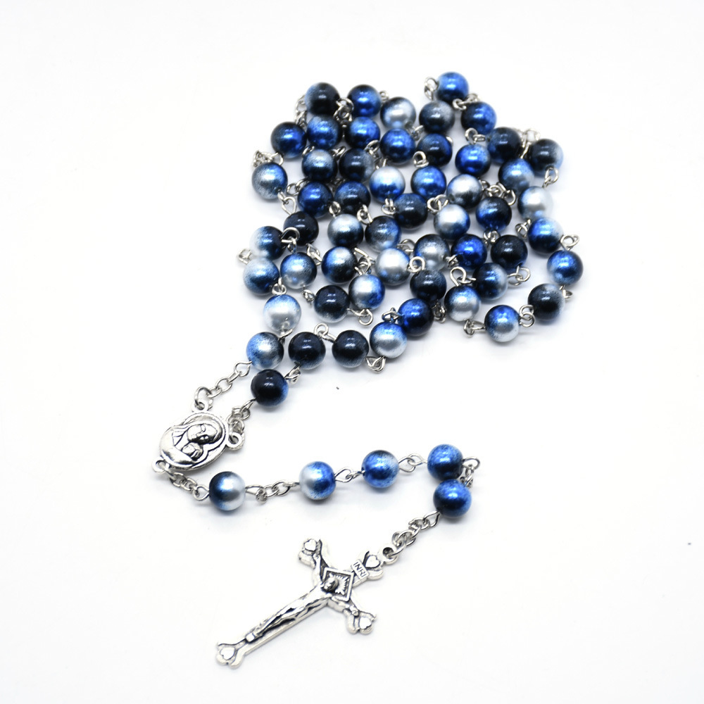 Collier de chapelet, alliage de zinc, avec plastique, croix, Placage, bijoux de mode, plus de couleurs à choisir, 8mm, Longueur 80 cm, Vendu par PC