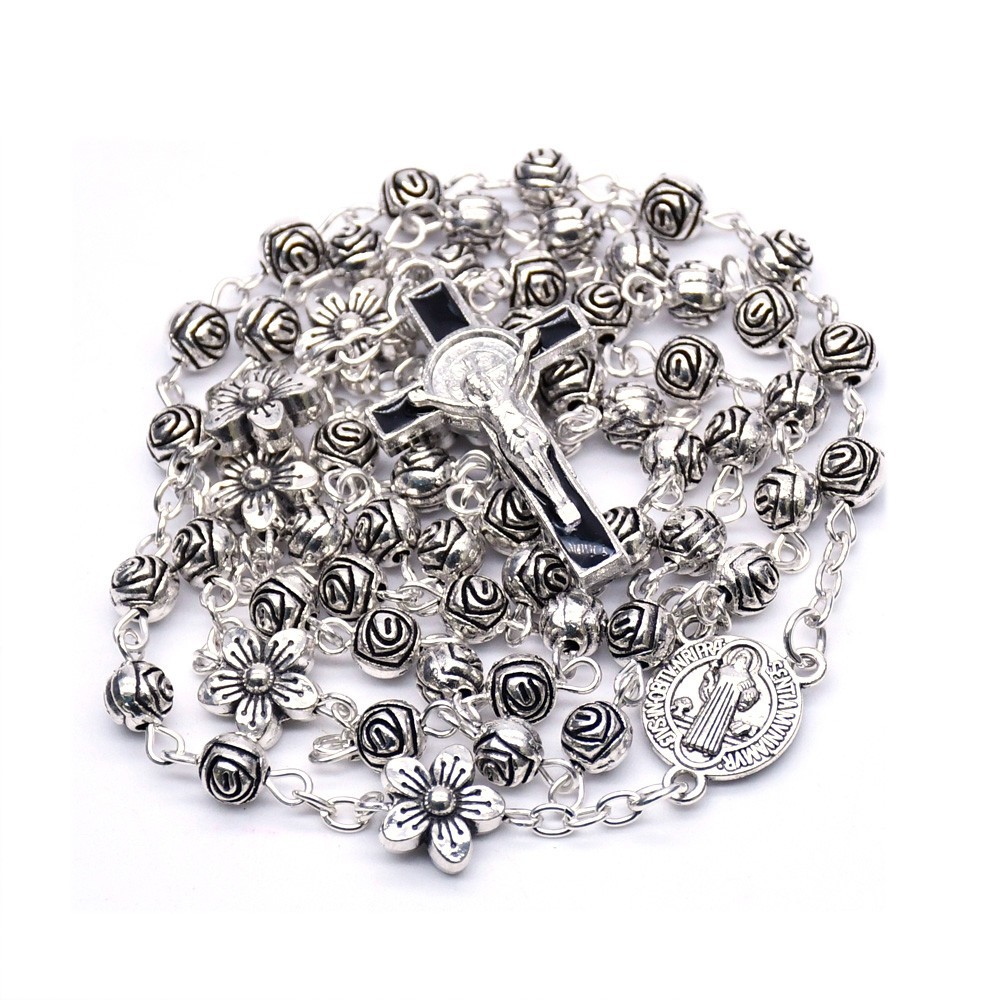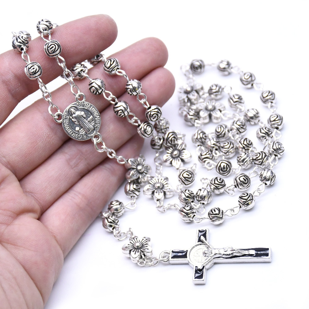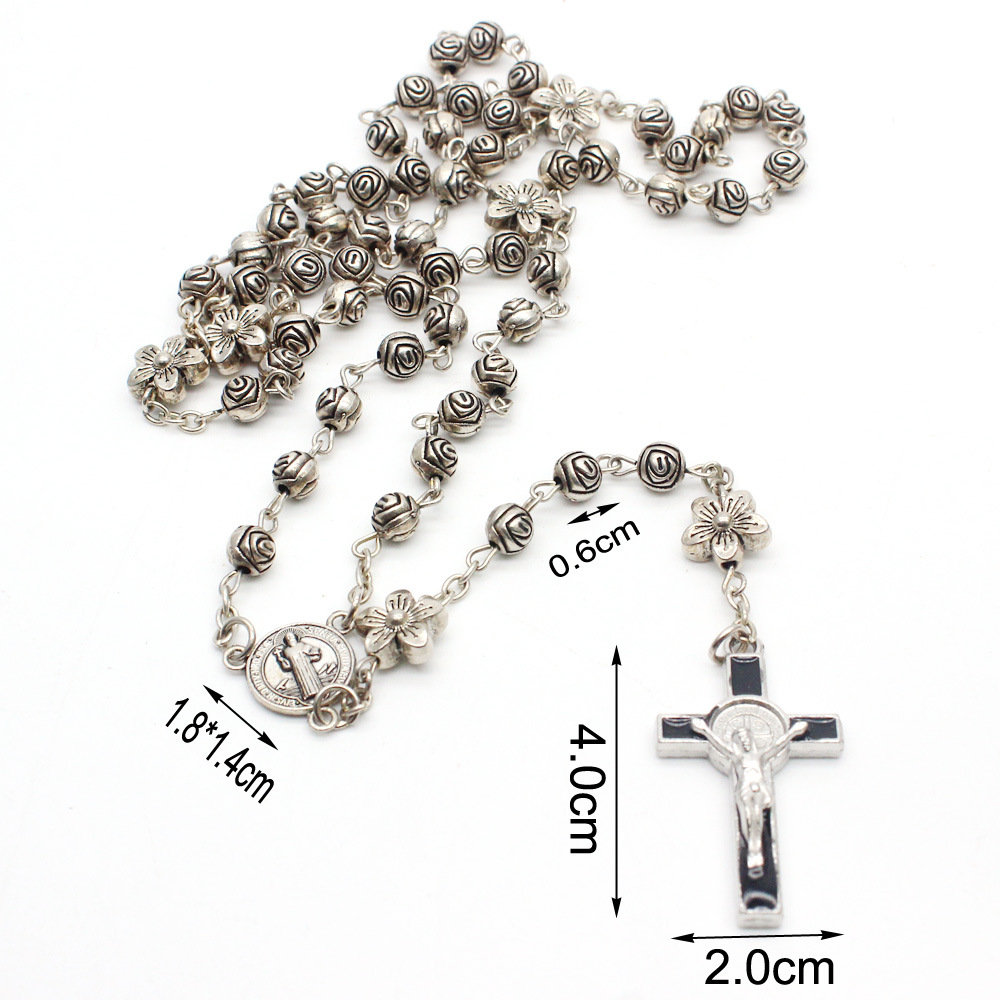 Collier de chapelet, alliage de zinc, croix, bijoux de mode, couleurs mélangées, 6mm, Longueur 52 cm, Vendu par PC