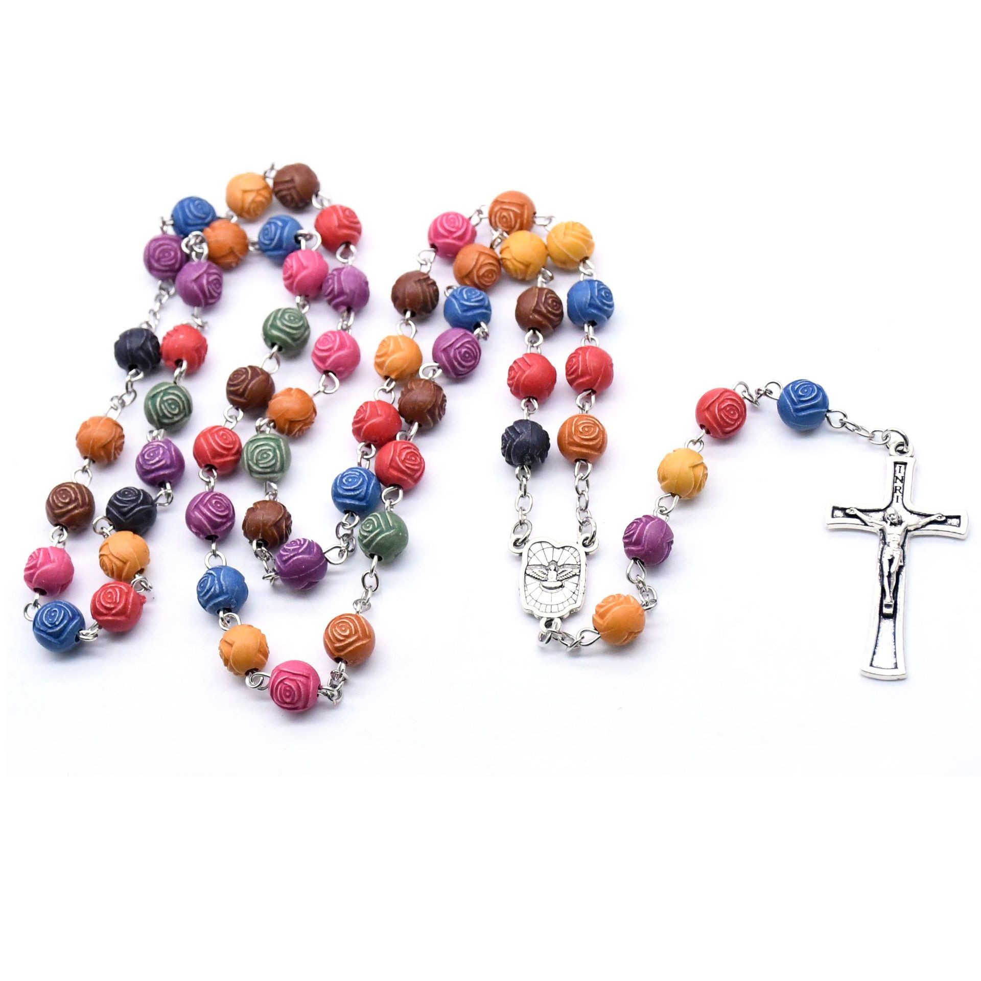 Collier de chapelet, alliage de zinc, avec plastique, croix, Placage, bijoux de mode, couleurs mélangées, 8mm, Longueur 55 cm, Vendu par PC