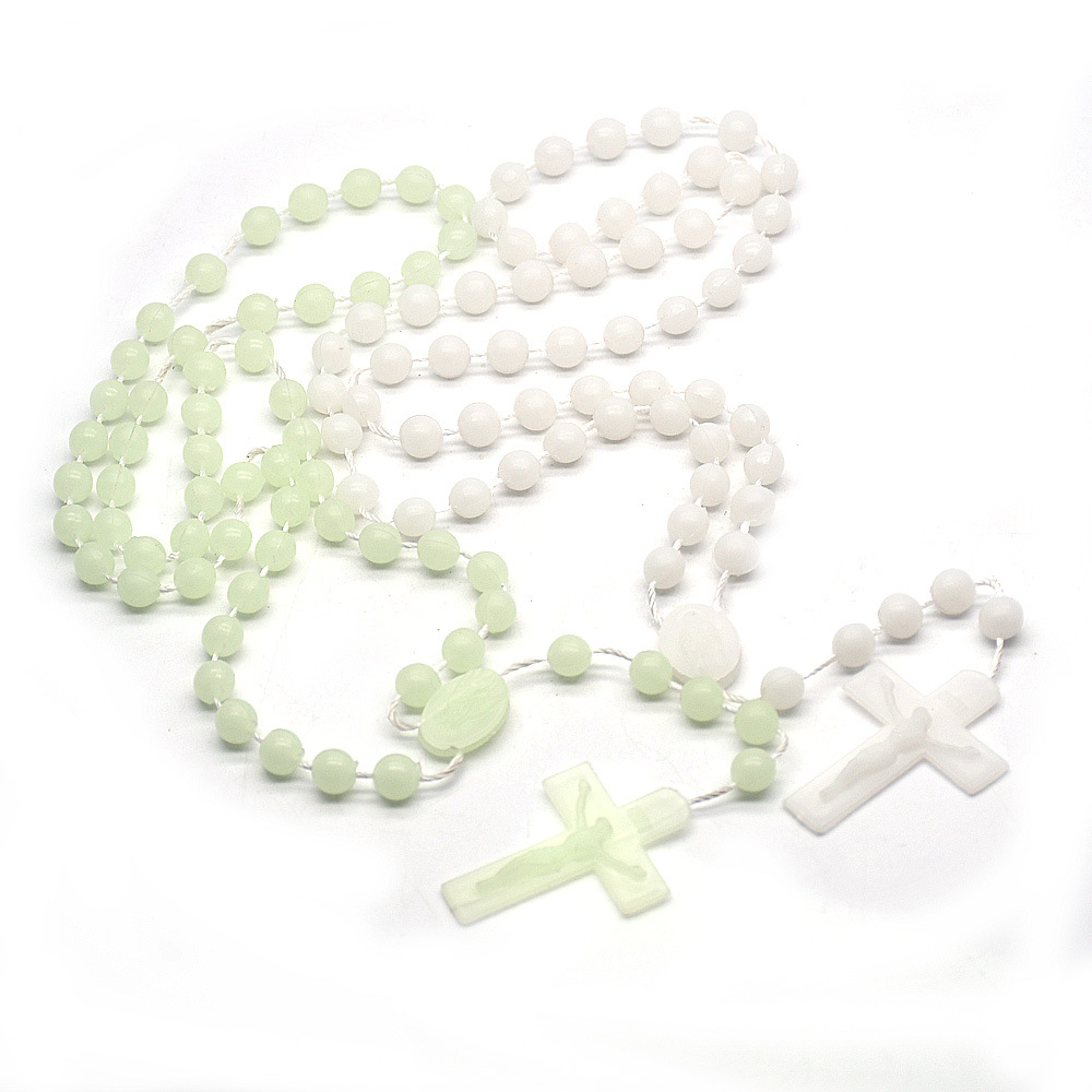 Collier de chapelet, plastique, croix, bijoux de mode & lumineux, plus de couleurs à choisir, 8mm, Longueur 33 cm, Vendu par PC