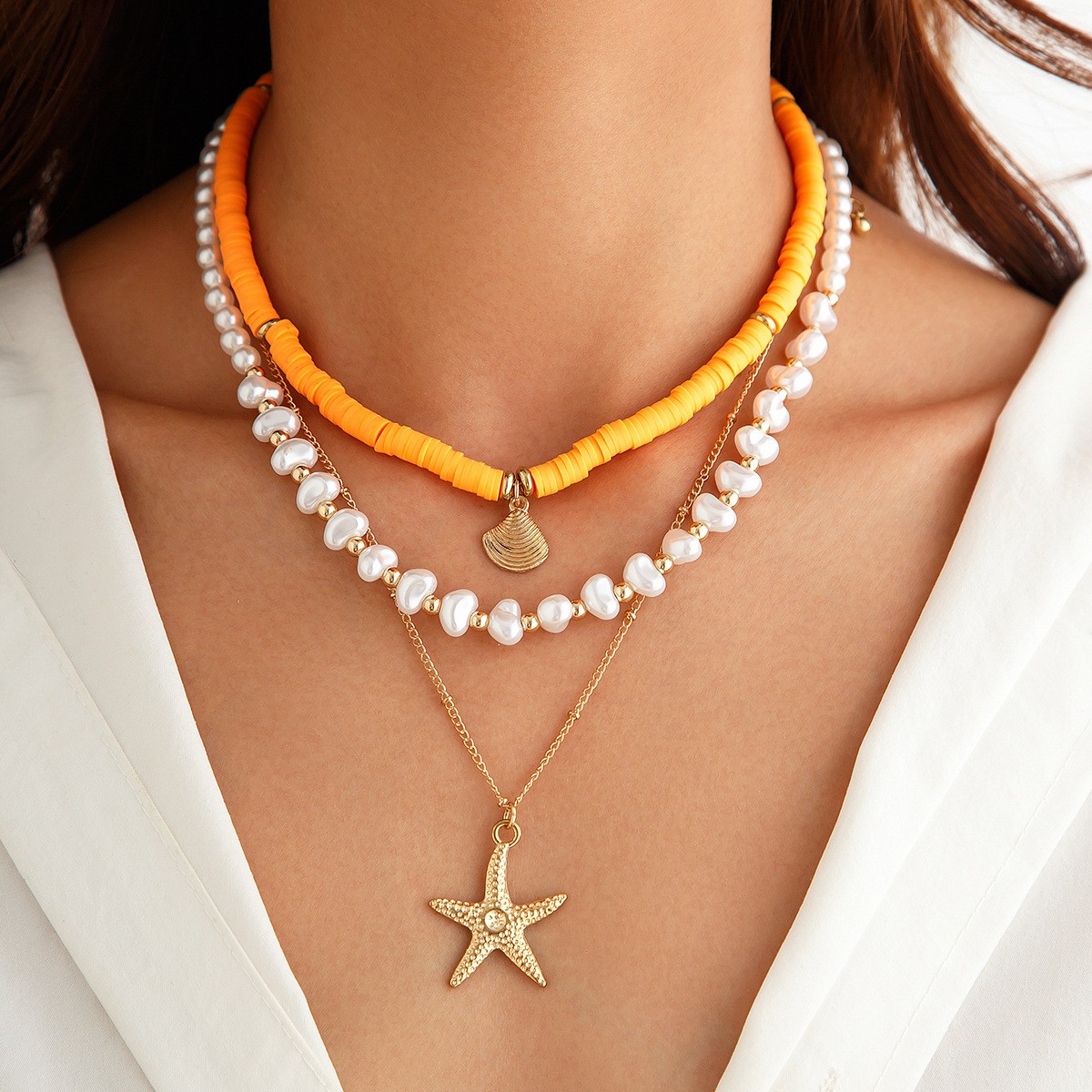 Collier de mode Multi couche, Cuivre-Coated-Fer, avec argile de polymère & plastique revêtu de cuivre & perle de plastique & alliage de zinc, Placage, bijoux de mode & styles différents pour le choix & pour femme, plus de couleurs à choisir, Vendu par fixé
