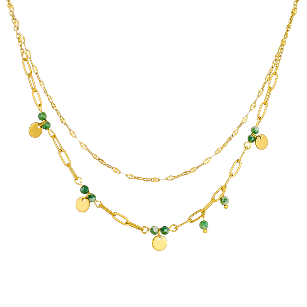Collier de mode Multi couche, Acier inoxydable 304, avec résine, Placage de couleur d'or, Double couche & bijoux de mode & pour femme, Vendu par PC
