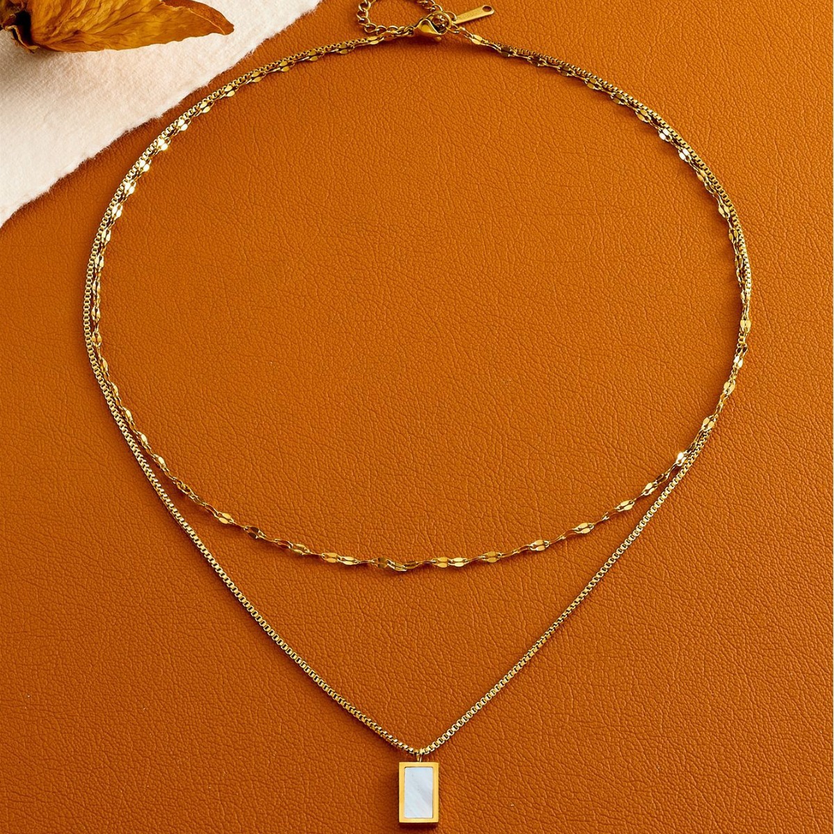 Collier de mode Multi couche, Acier inoxydable 304, avec coquille blanche, Placage, Double couche & bijoux de mode & pour femme, doré, Longueur Environ 41-50 cm, Vendu par PC