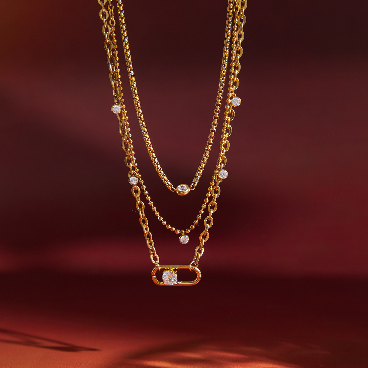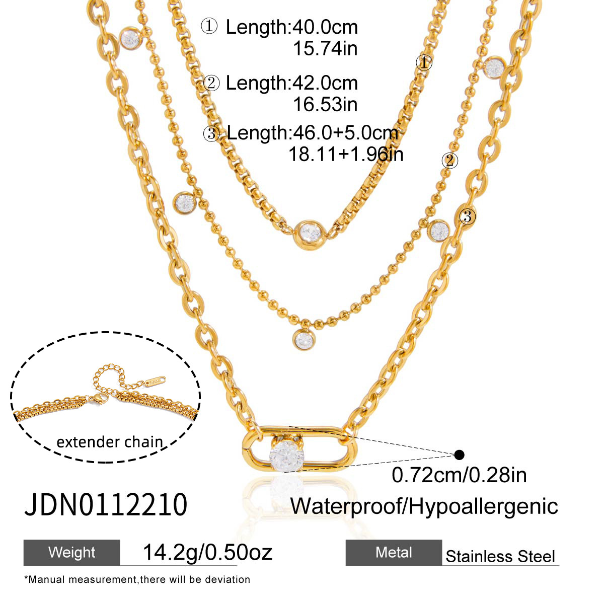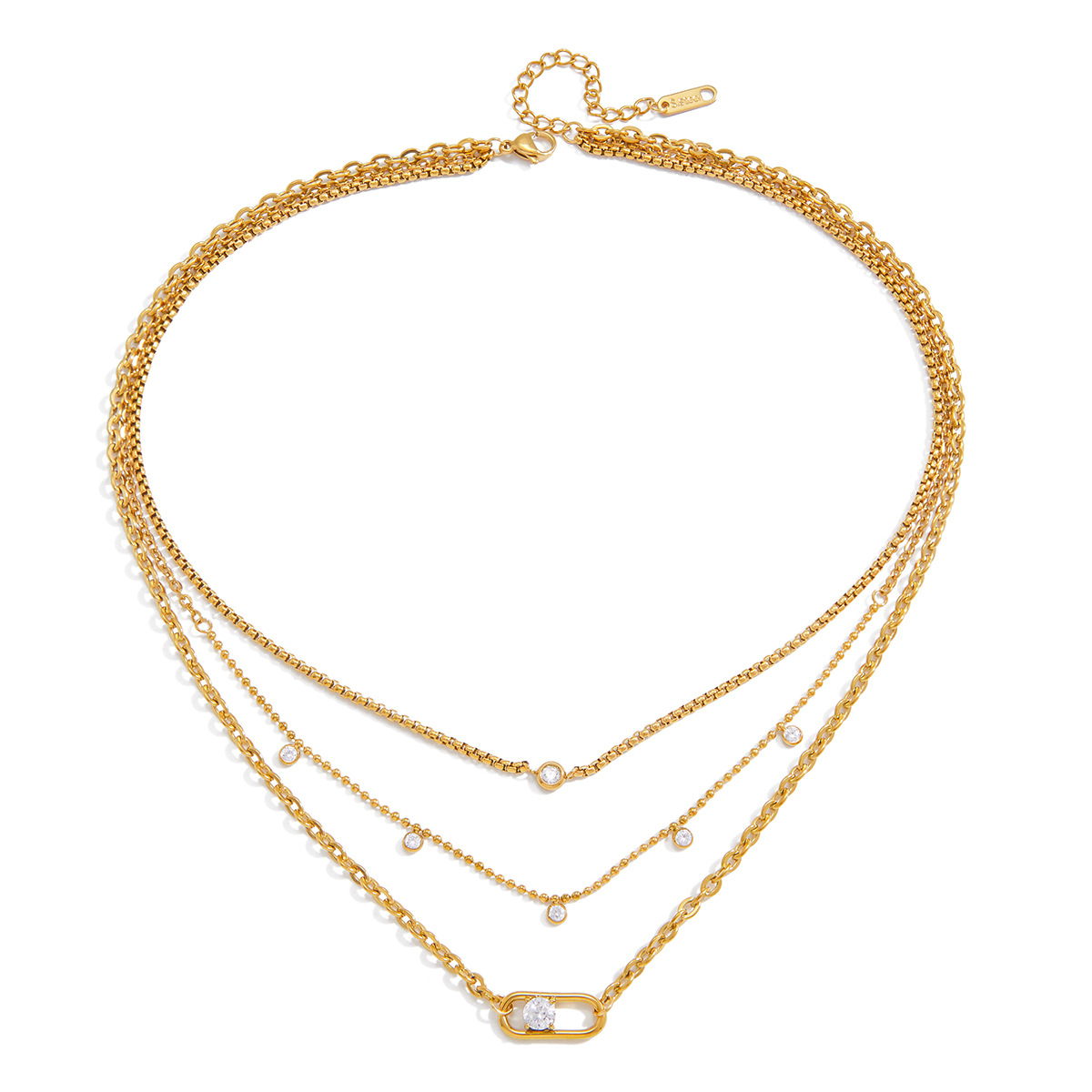 Collier de mode Multi couche, acier inoxydable, avec zircon cubique, Plaqué or 18K, trois couches & bijoux de mode & pour femme, Vendu par brin
