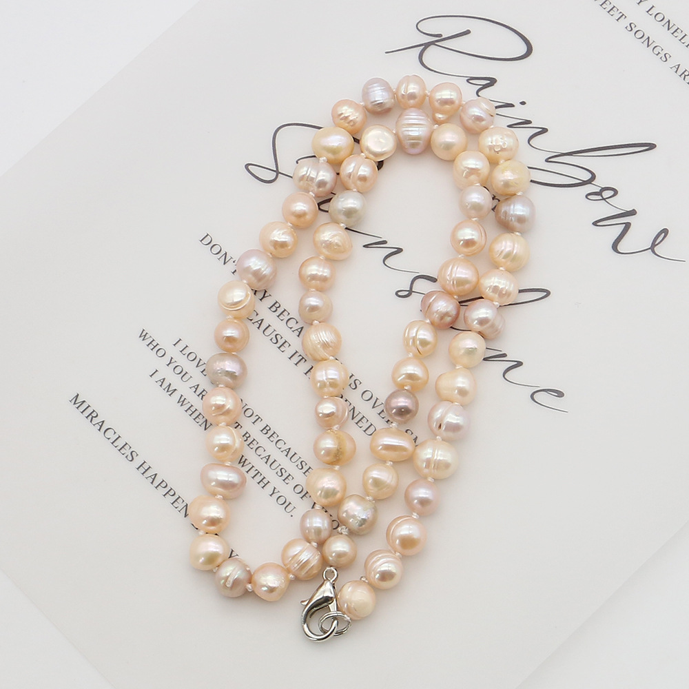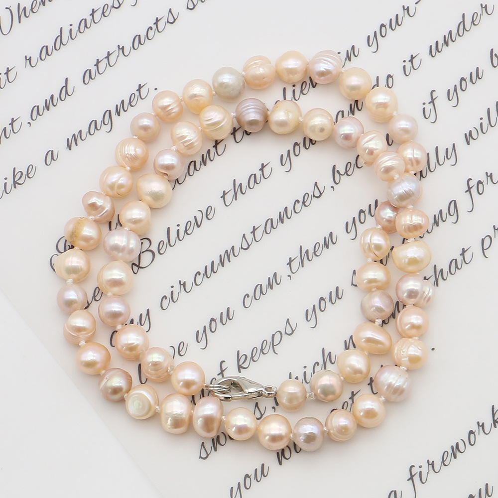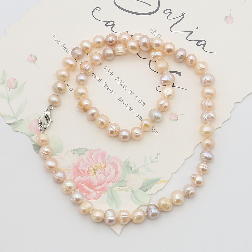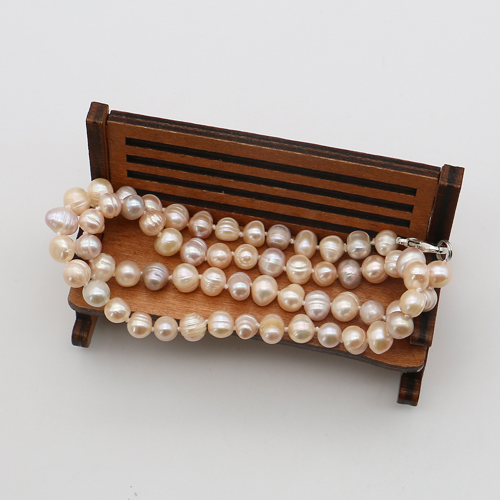 Collier de perles d'eau douce naturelles, perle d'eau douce cultivée, avec Acier inoxydable 304, Baroque, bijoux de mode, couleurs mélangées, 7-8mm, Vendu par 44 cm brin