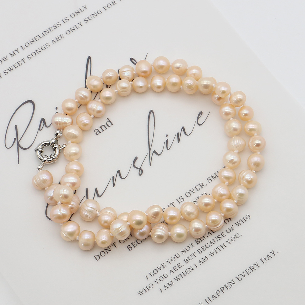Collier de perles d'eau douce naturelles, perle d'eau douce cultivée, avec Acier inoxydable 304, Irrégulière, bijoux de mode, couleurs mélangées, 7-8mm, Vendu par 47 cm brin