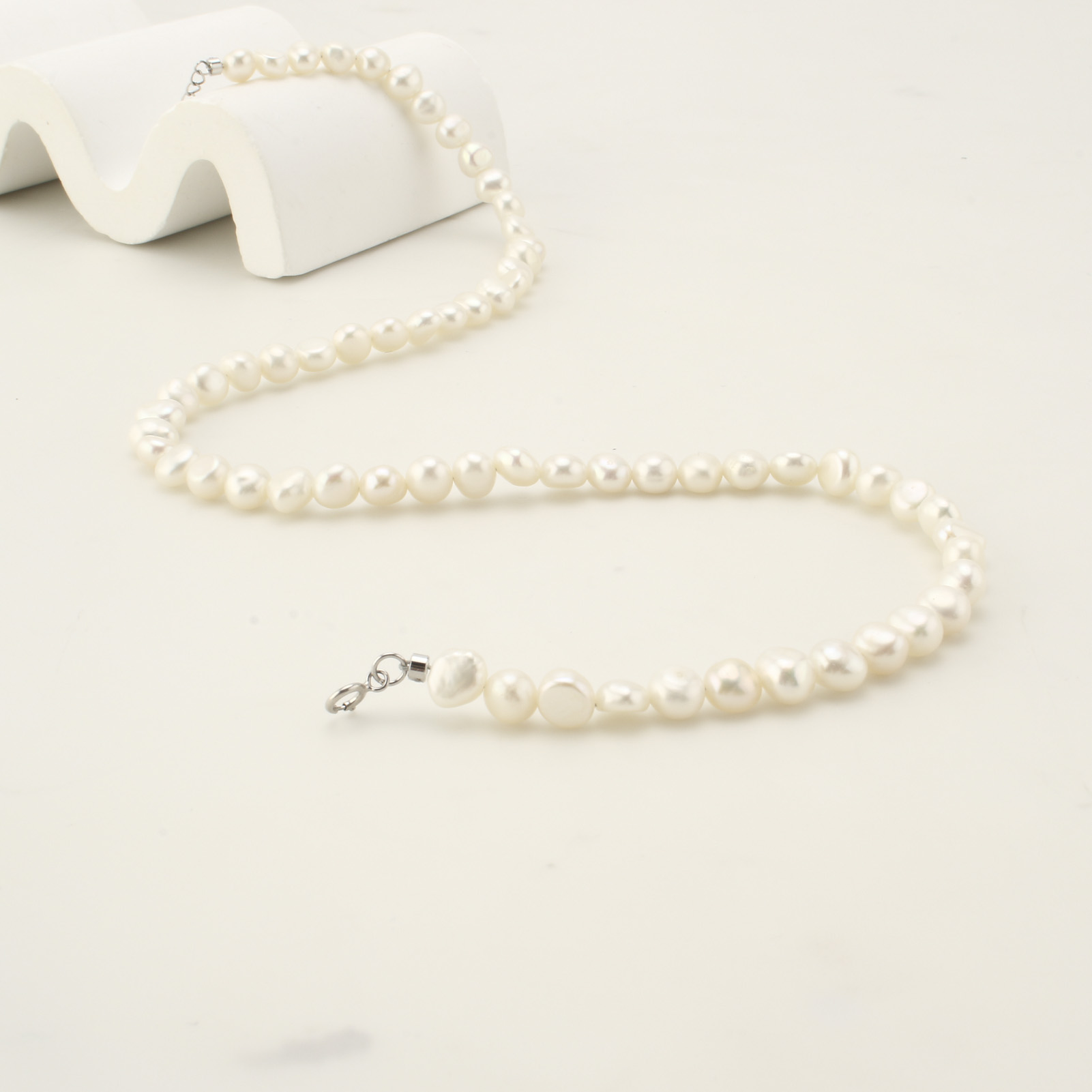 Collier de perles d'eau douce naturelles, perle d'eau douce cultivée, Plat rond, bijoux de mode, blanc, 6-7mm, Vendu par 45 cm brin