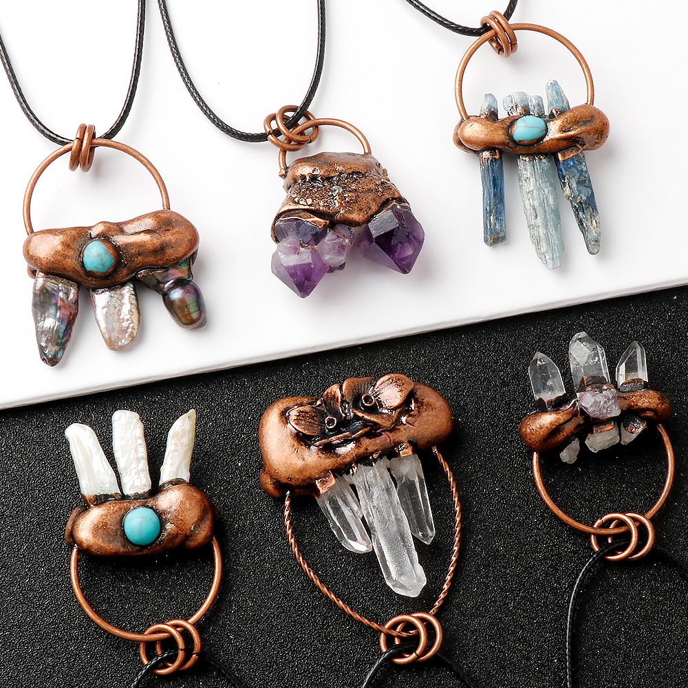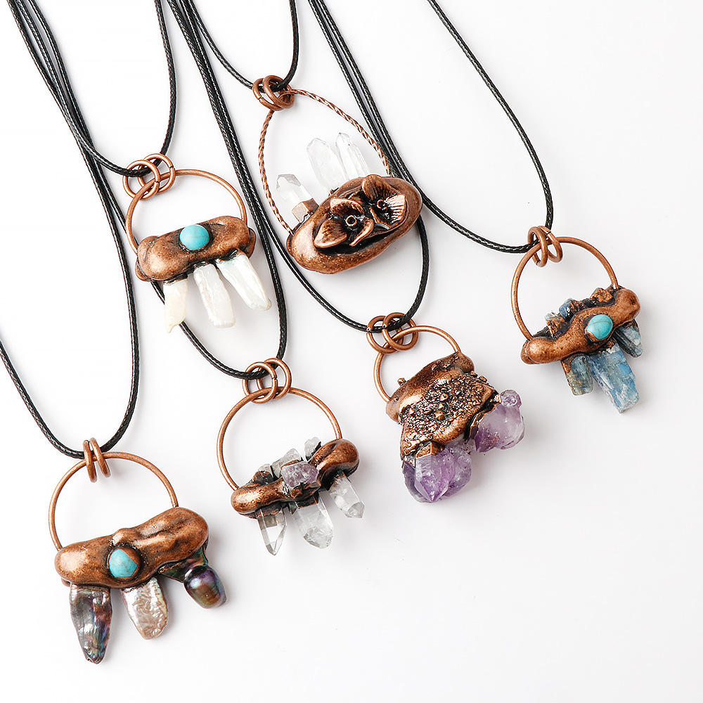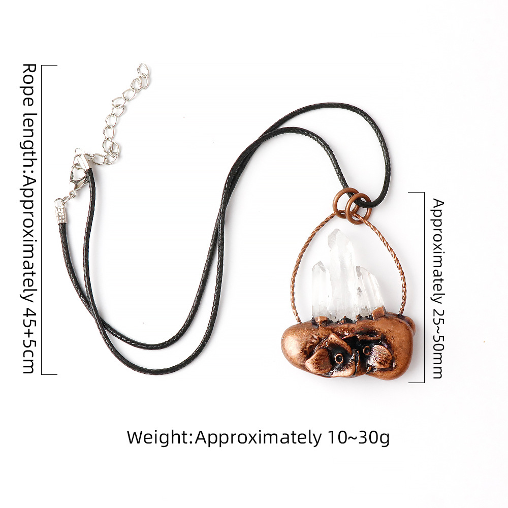 Collier de quartz, Cristal naturel, avec cordon en cuir & coquille d'ormeau & perle d'eau douce cultivée & laiton & alliage de zinc, avec 5cm chaînes de rallonge, Plaqué de couleur de cuivre antique, Forme différente pour le choix & unisexe, plus de couleurs à choisir, protéger l'environnement, sans nickel, plomb et cadmium, about:25-50mm, Longueur Environ 45 cm, Vendu par PC