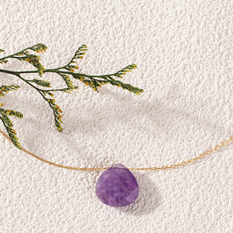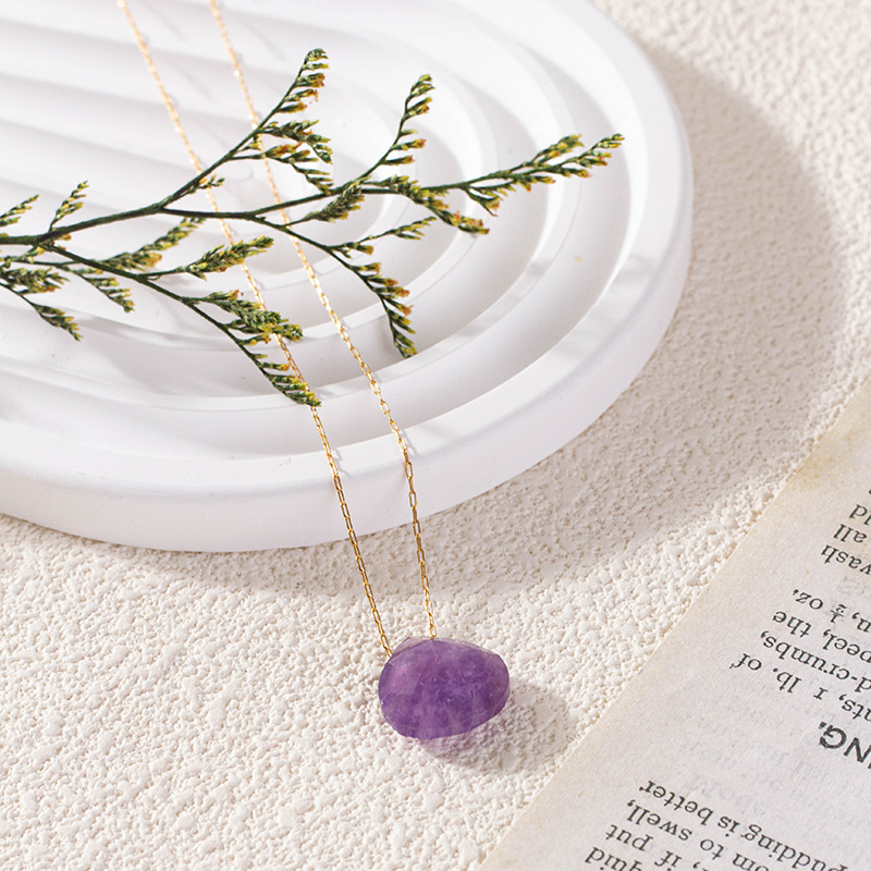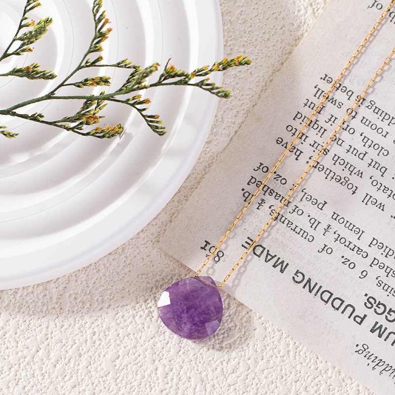Collier de quartz, laiton, avec améthyste, Placage de couleur d'or, pour femme, violet, protéger l'environnement, sans nickel, plomb et cadmium, Longueur 46 cm, Vendu par PC