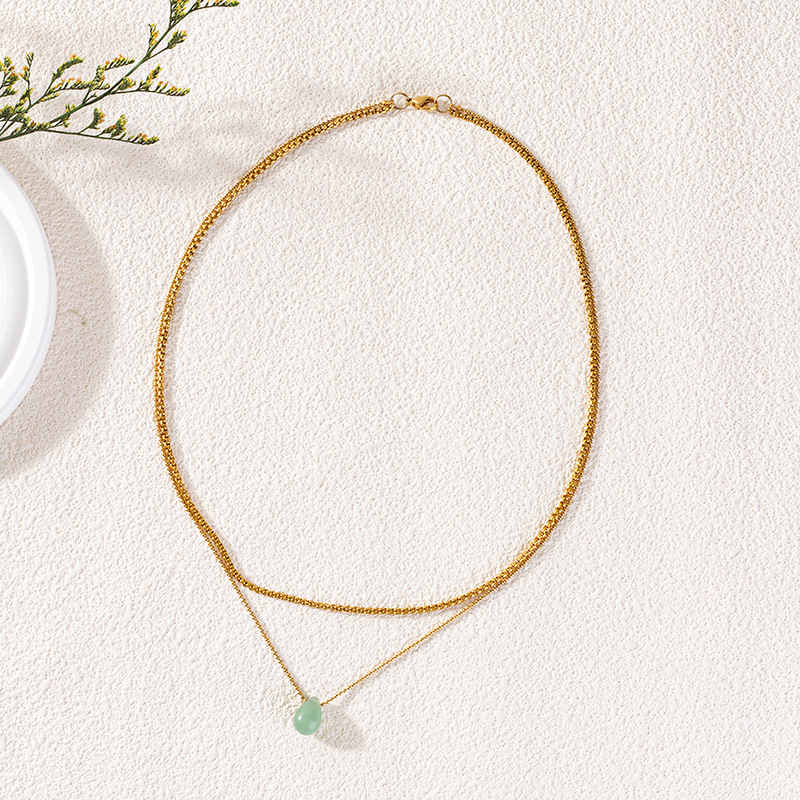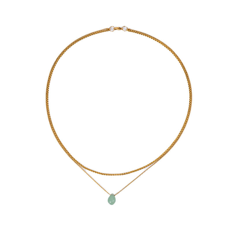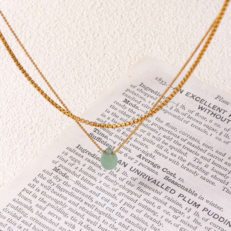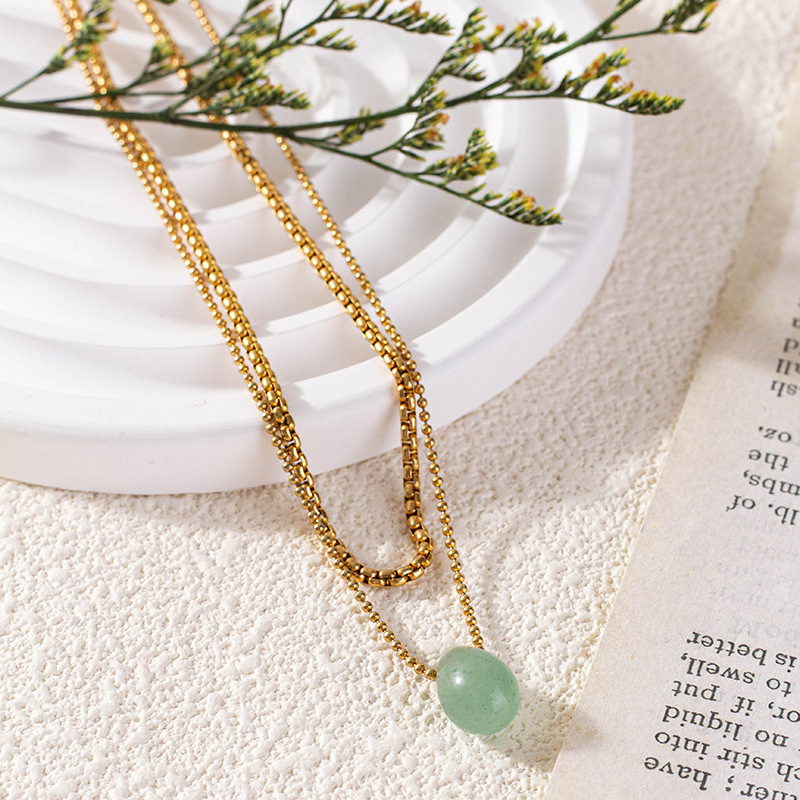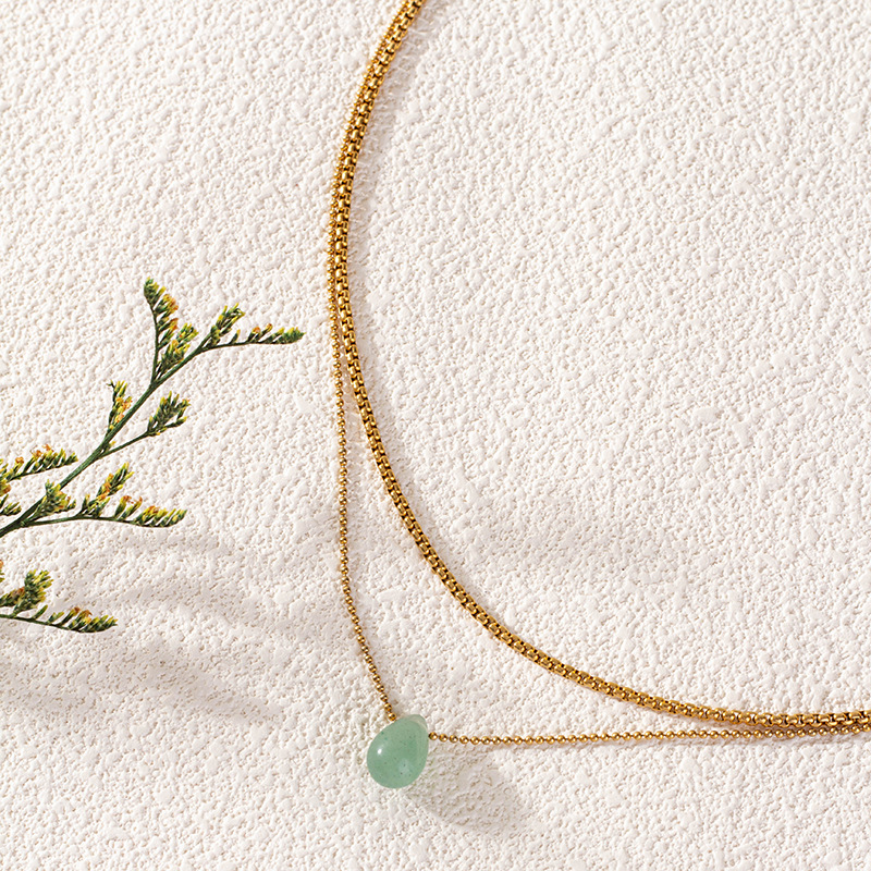 Collier de quartz, laiton, avec Strawberry Quartz, larme, Placage de couleur d'or, pour femme, vert, protéger l'environnement, sans nickel, plomb et cadmium, Longueur 46 cm, Vendu par PC