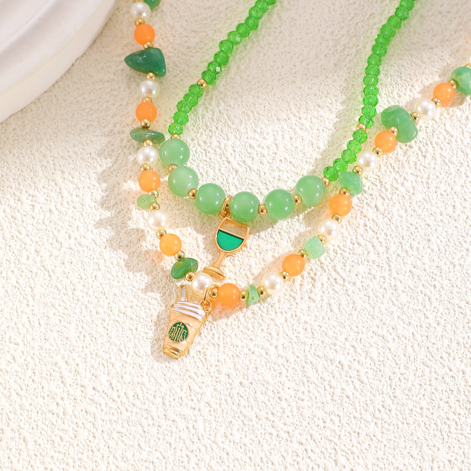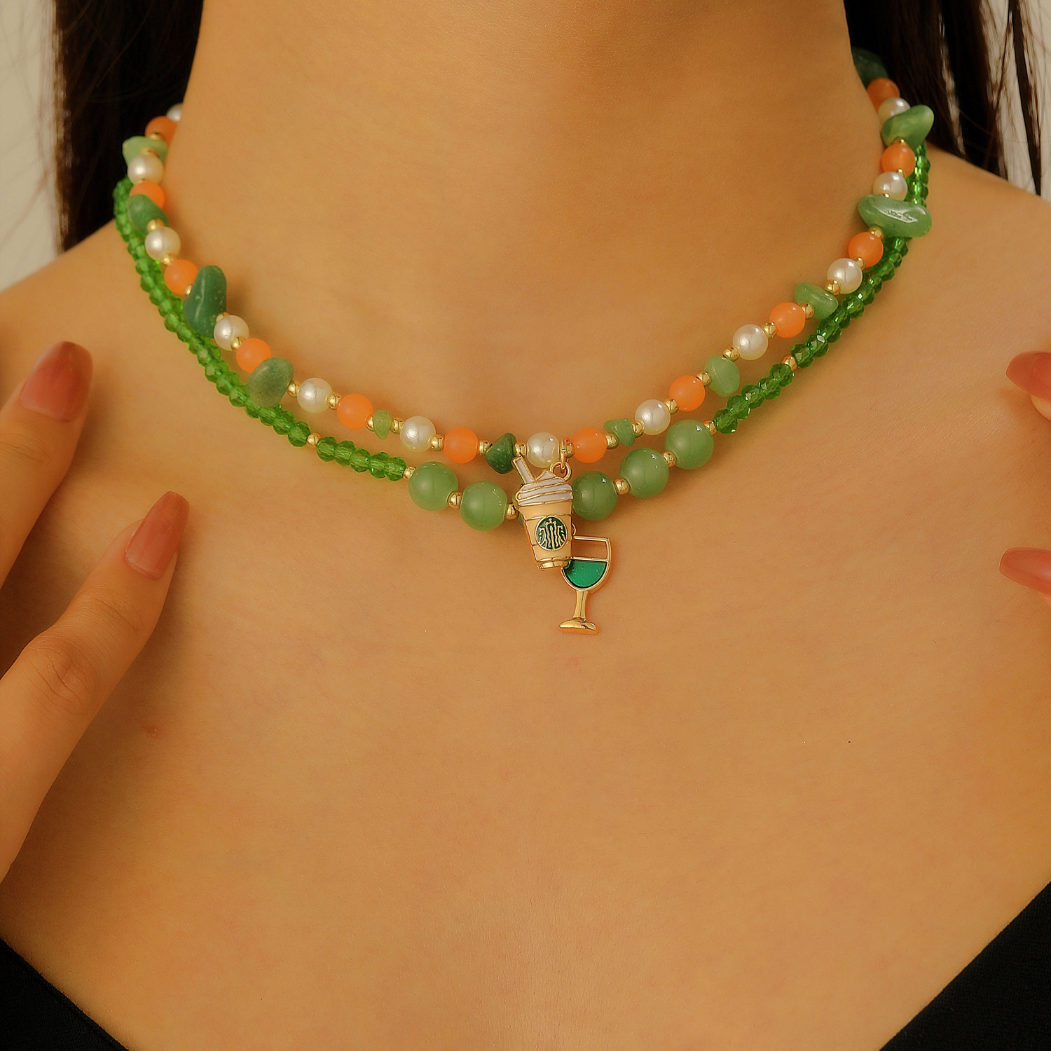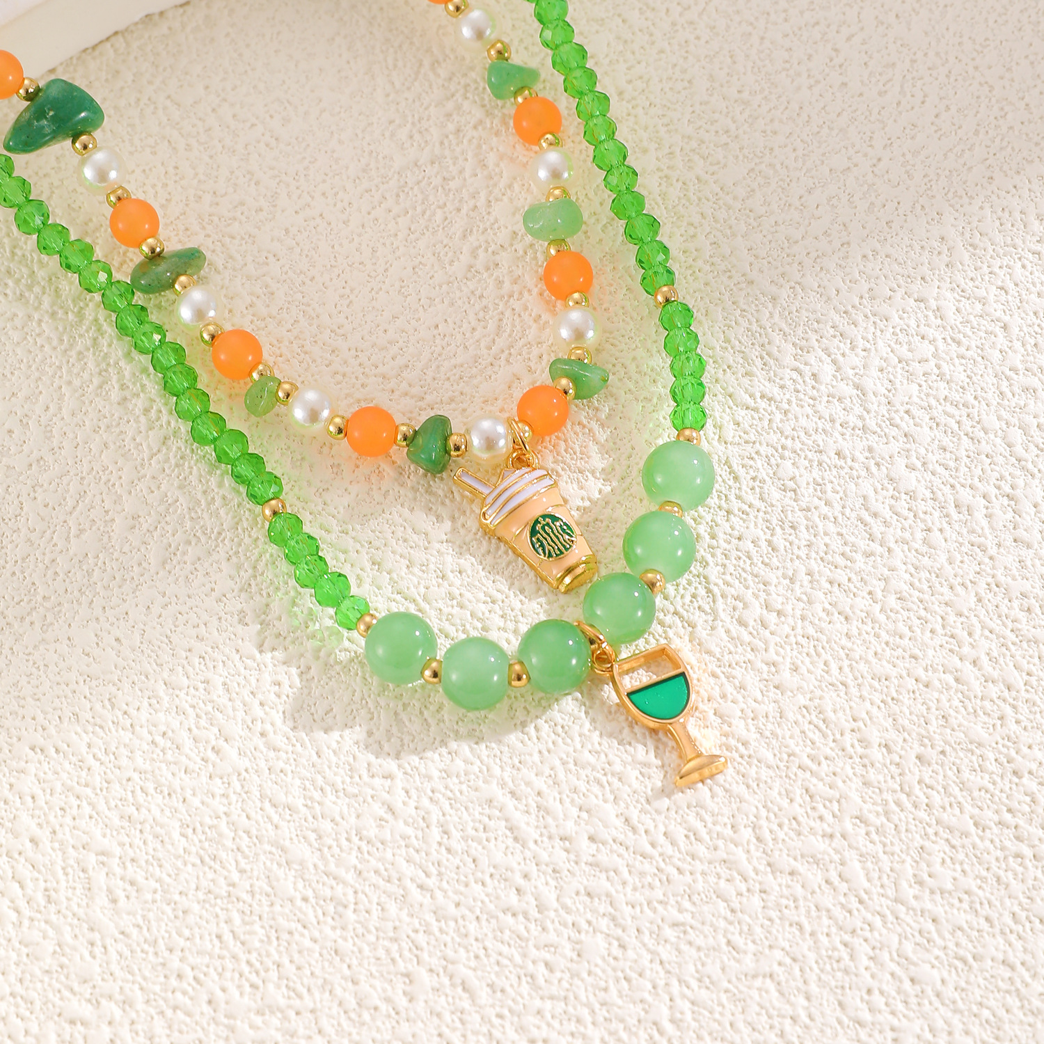Collier en cristal, alliage de zinc, avec cristal & perle de plastique, Placage de couleur d'or, Double couche & bijoux de mode, plus de couleurs à choisir, Vendu par PC