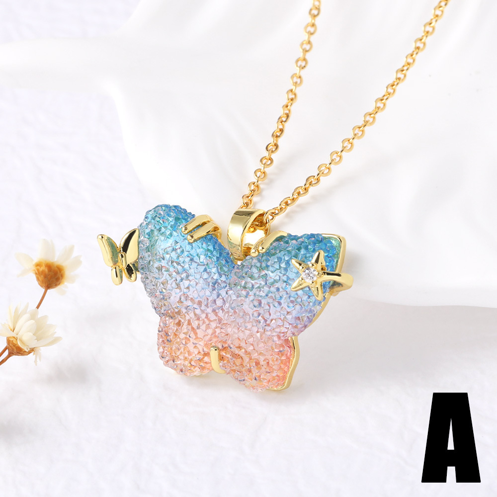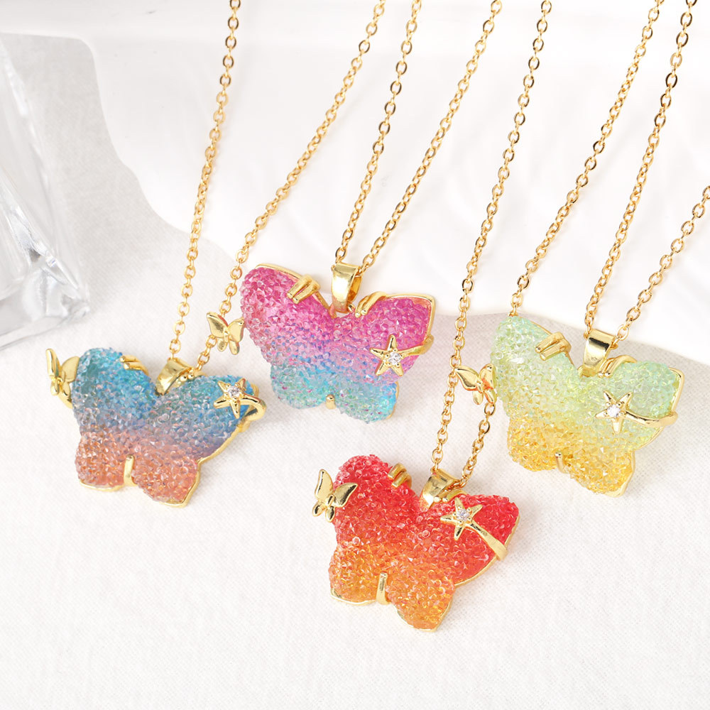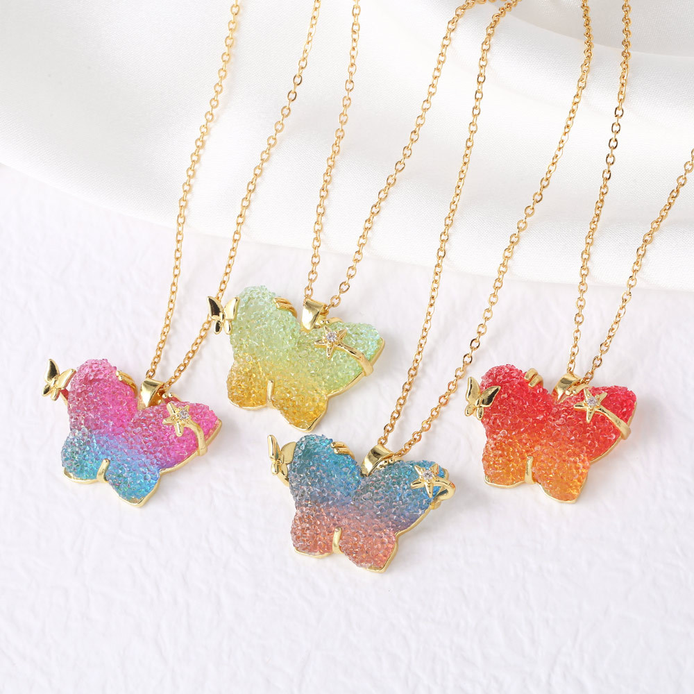 Collier en laiton cubique Zircon Micro Pave, avec Acrylique, avec 5cm chaînes de rallonge, papillon, Placage de couleur d'or, bijoux de mode & pavé de micro zircon, plus de couleurs à choisir, protéger l'environnement, sans nickel, plomb et cadmium, Longueur 45 cm, Vendu par PC