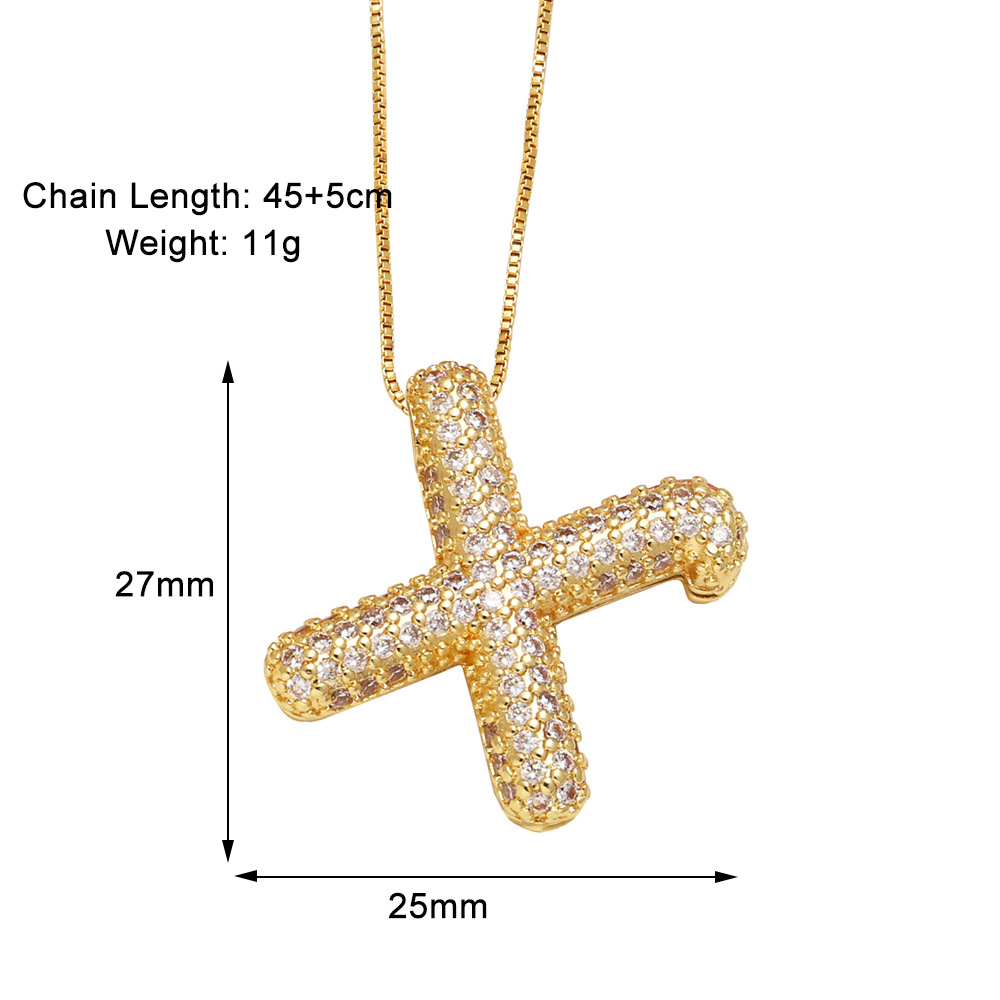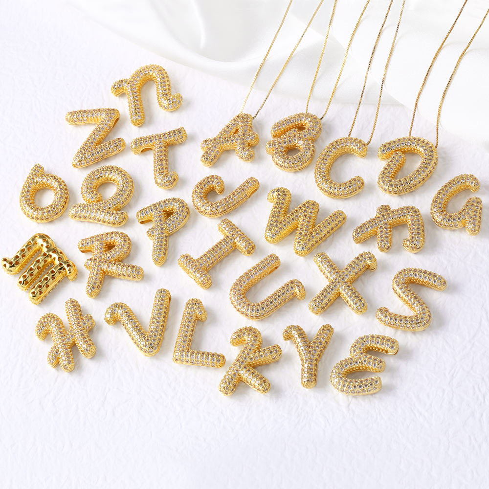 Collier en laiton cubique Zircon Micro Pave, avec 5cm chaînes de rallonge, Lettre d’alphabet, Placage de couleur d'or, bijoux de mode & modèles différents pour le choix & pavé de micro zircon, doré, protéger l'environnement, sans nickel, plomb et cadmium, Longueur 45 cm, Vendu par PC