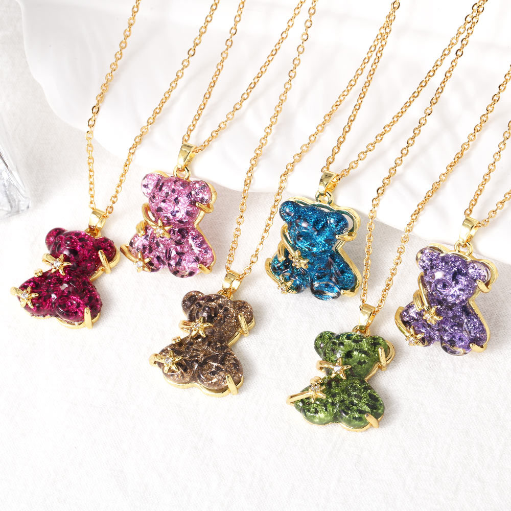 Collier en laiton cubique Zircon Micro Pave, avec Acrylique, avec 5cm chaînes de rallonge, ours, Placage de couleur d'or, bijoux de mode & pavé de micro zircon, plus de couleurs à choisir, protéger l'environnement, sans nickel, plomb et cadmium, Longueur 45 cm, Vendu par PC