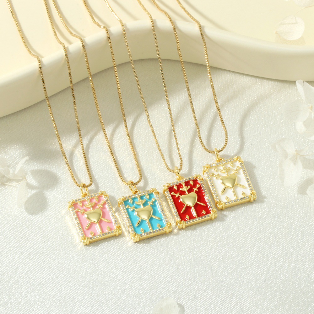 Collier en laiton cubique Zircon Micro Pave, rectangle, Placage de couleur d'or, pavé de micro zircon & pour femme & émail, plus de couleurs à choisir, protéger l'environnement, sans nickel, plomb et cadmium, Vendu par PC