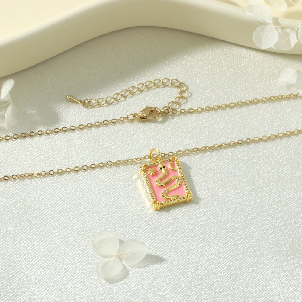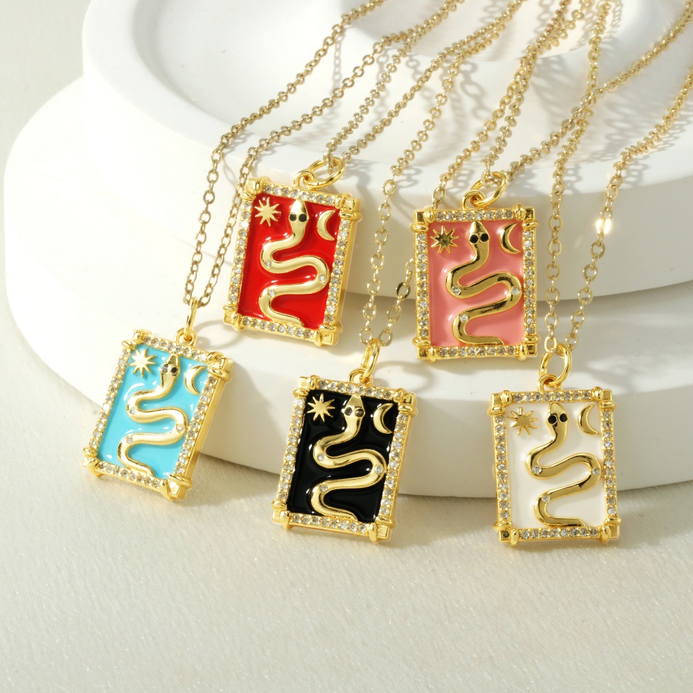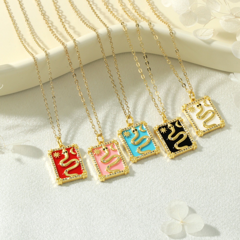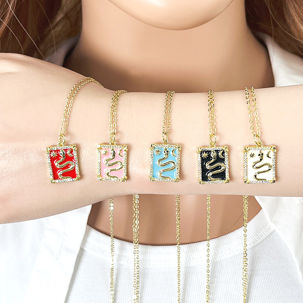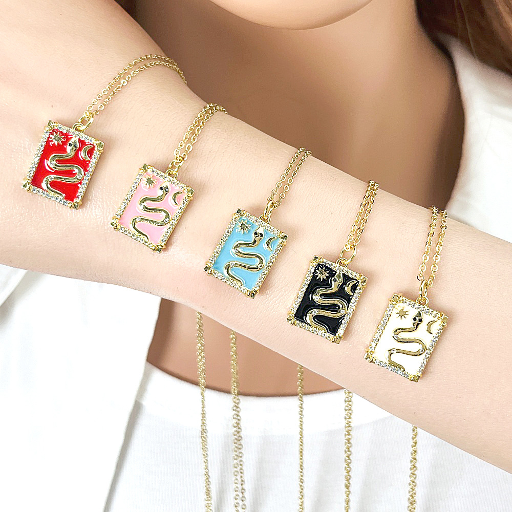 Collier en laiton cubique Zircon Micro Pave, rectangle, Placage de couleur d'or, pavé de micro zircon & pour femme & émail, plus de couleurs à choisir, protéger l'environnement, sans nickel, plomb et cadmium, Vendu par PC