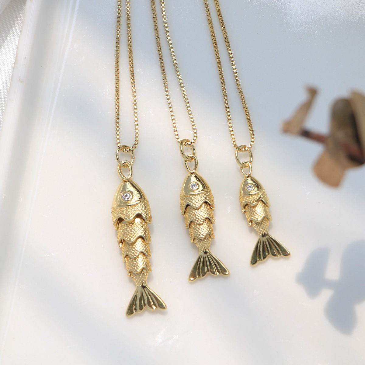 Collier en laiton cubique Zircon Micro Pave, poisson, Placage, bijoux de mode & pavé de micro zircon, plus de couleurs à choisir, Vendu par PC