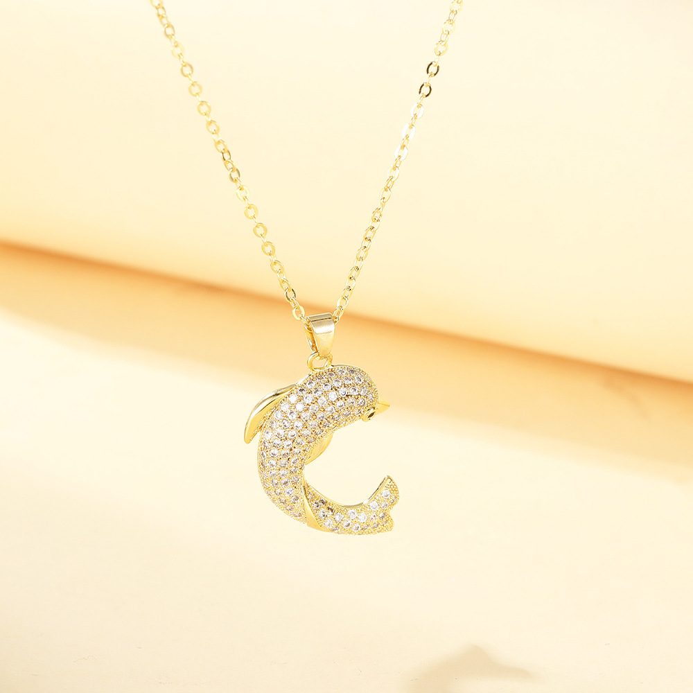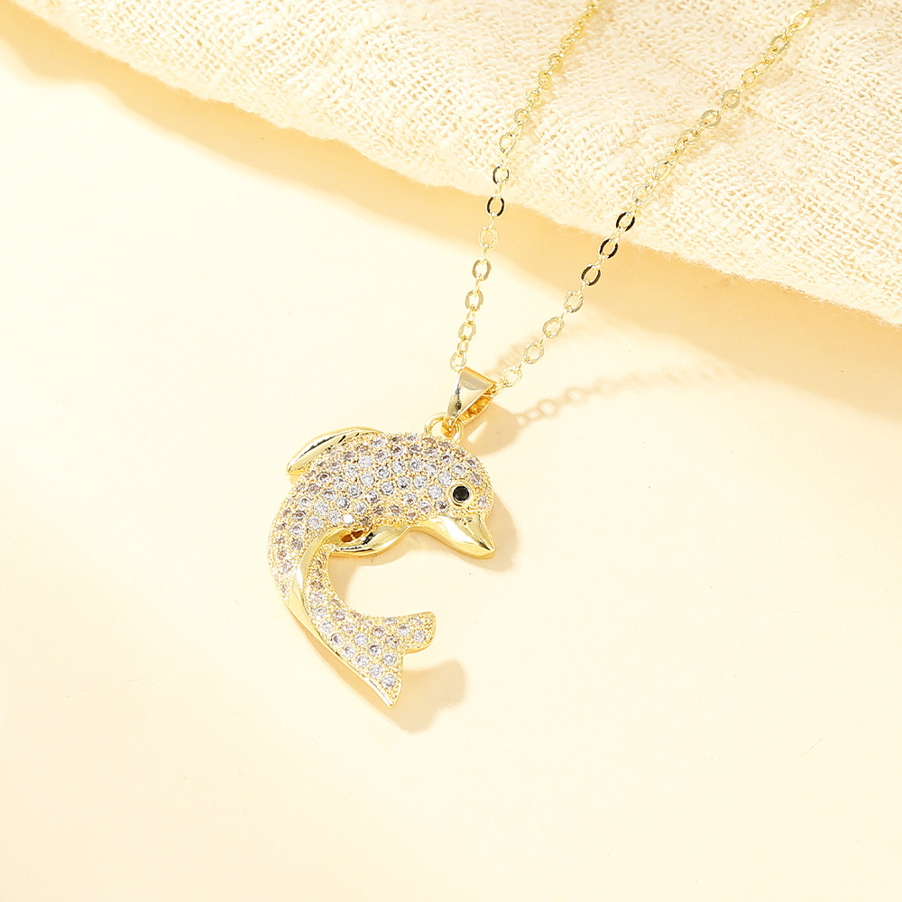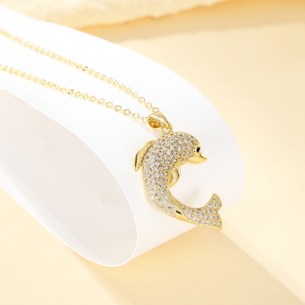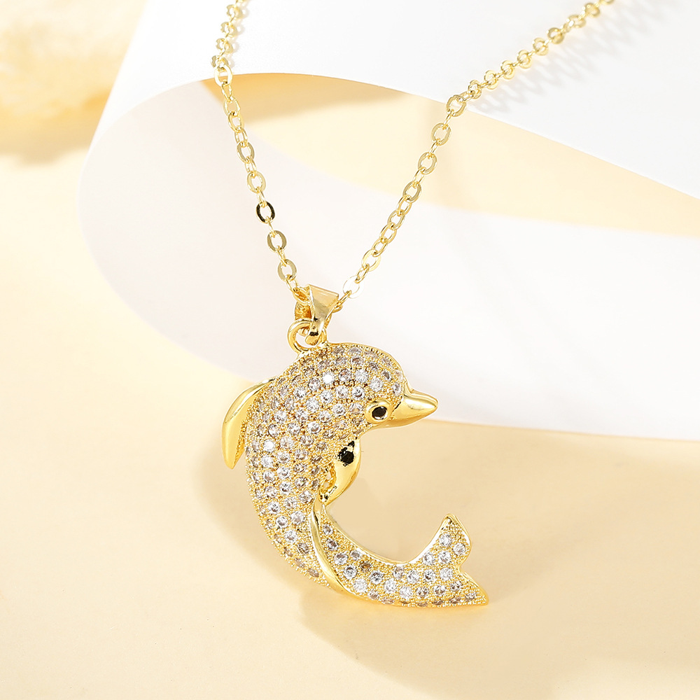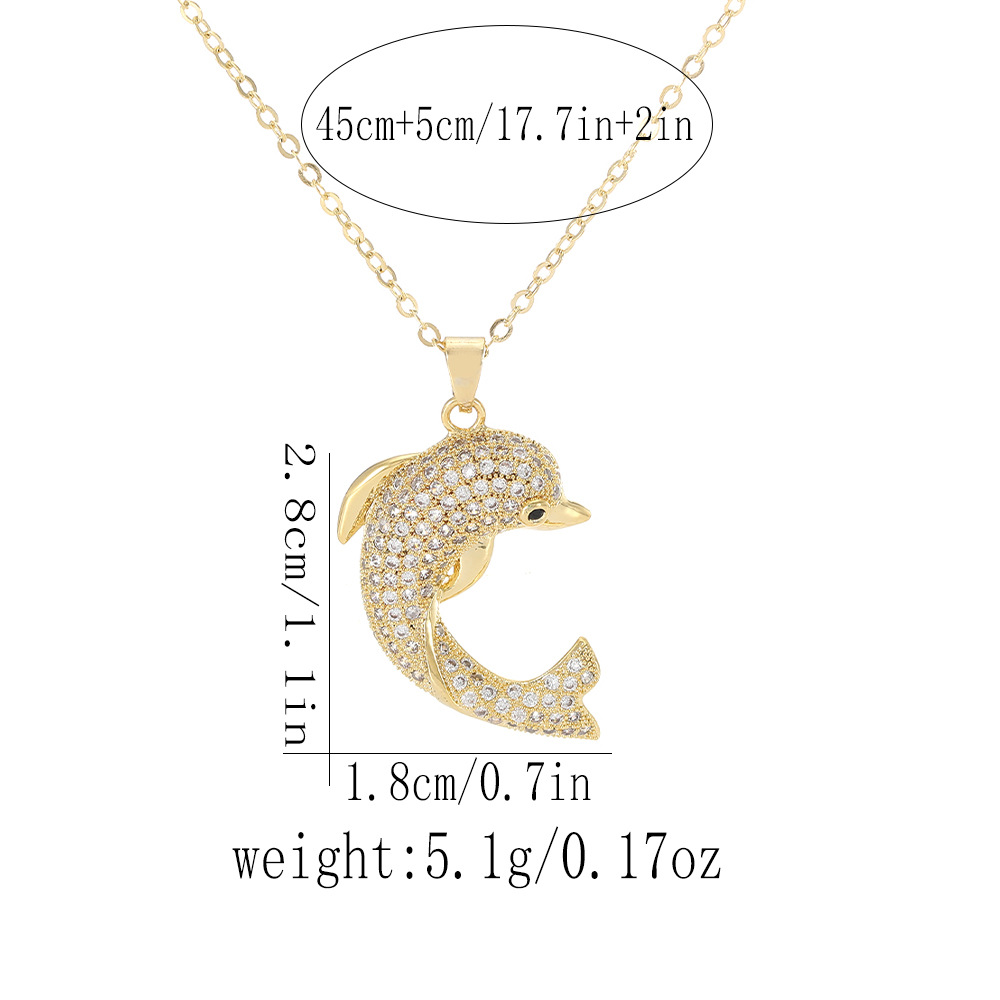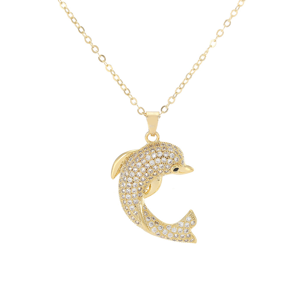 Collier en laiton cubique Zircon Micro Pave, dauphin, Placage, bijoux de mode & pavé de micro zircon & pour femme, doré, Vendu par PC