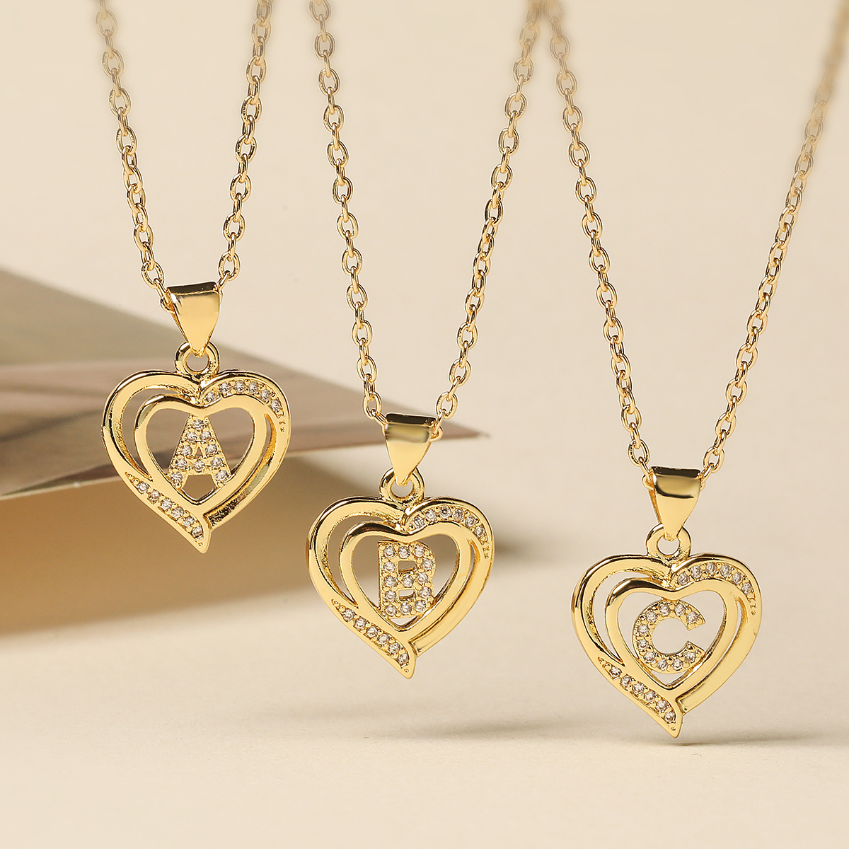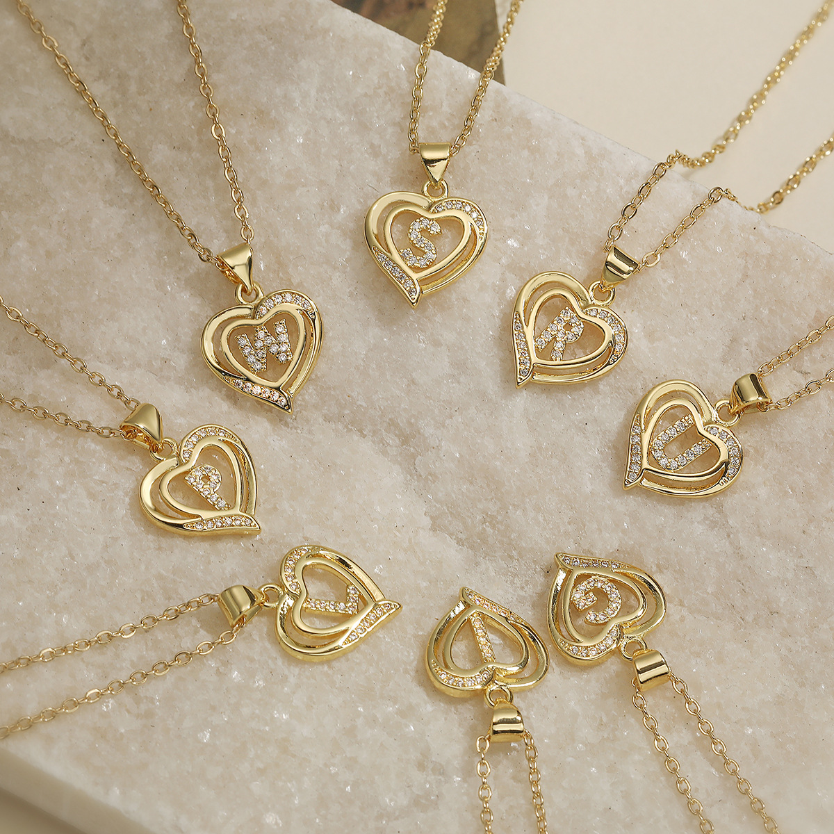 Collier en laiton cubique Zircon Micro Pave, coeur, Plaqué or 18K, styles différents pour le choix & pavé de micro zircon & pour femme & creux, Vendu par PC