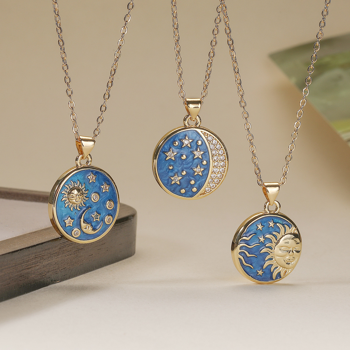 Collier en laiton cubique Zircon Micro Pave, Rond, Plaqué or 18K, modèles différents pour le choix & pavé de micro zircon & pour femme & émail, Vendu par PC