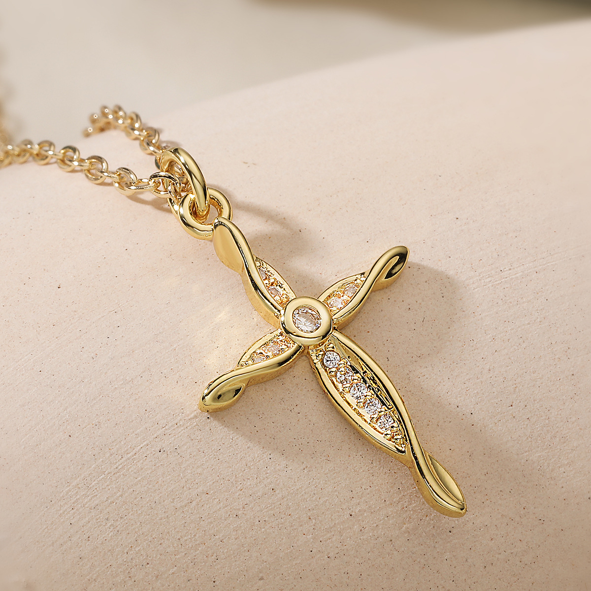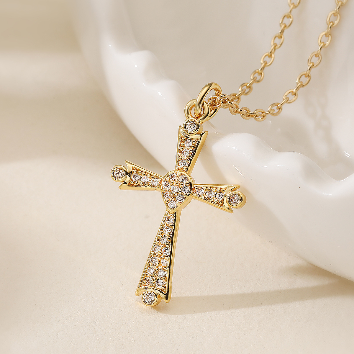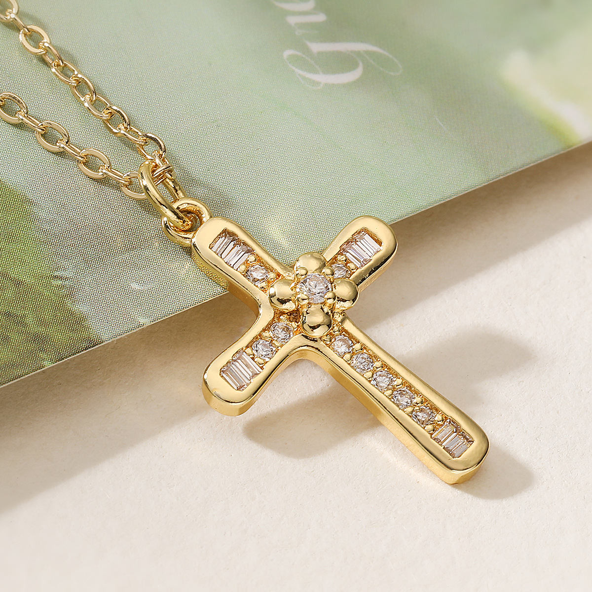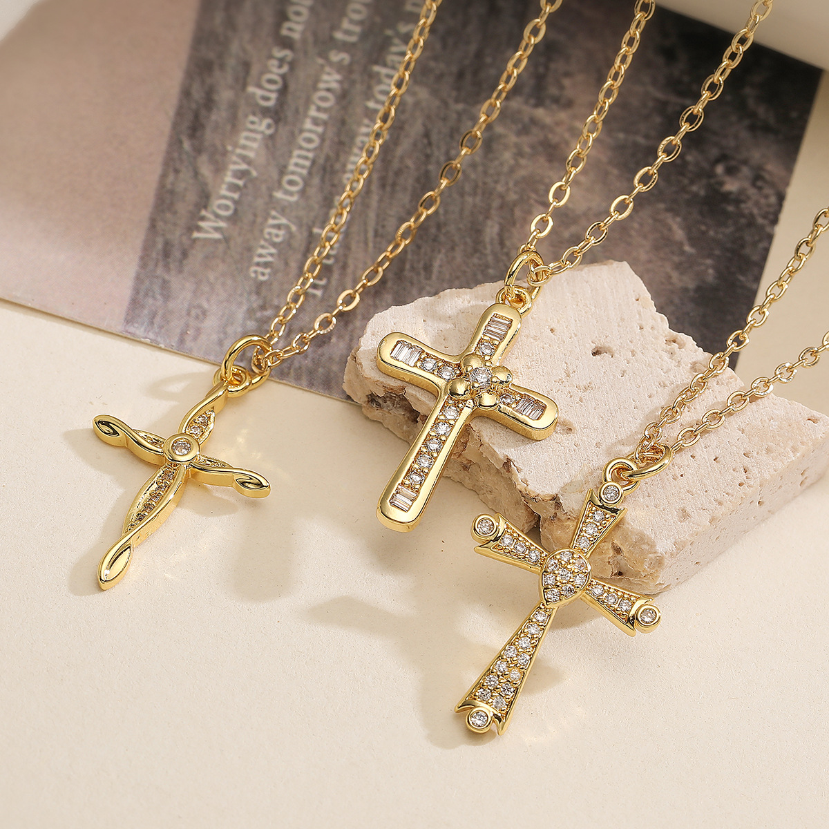 Collier en laiton cubique Zircon Micro Pave, croix, Plaqué or 18K, styles différents pour le choix & pavé de micro zircon & pour femme, Vendu par PC