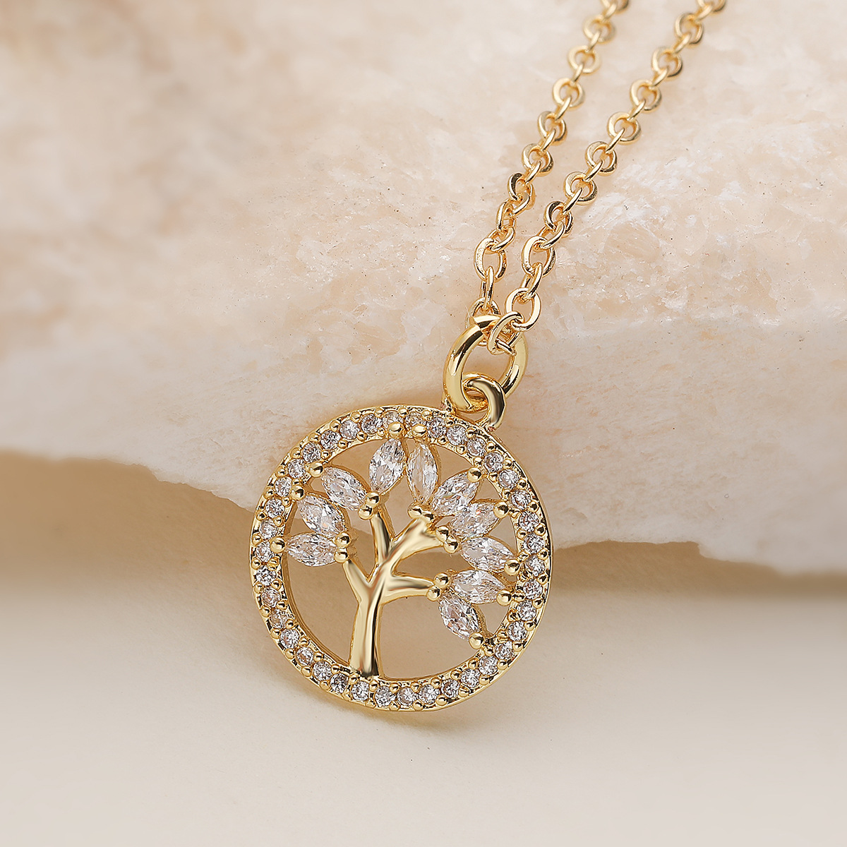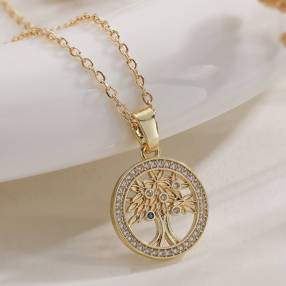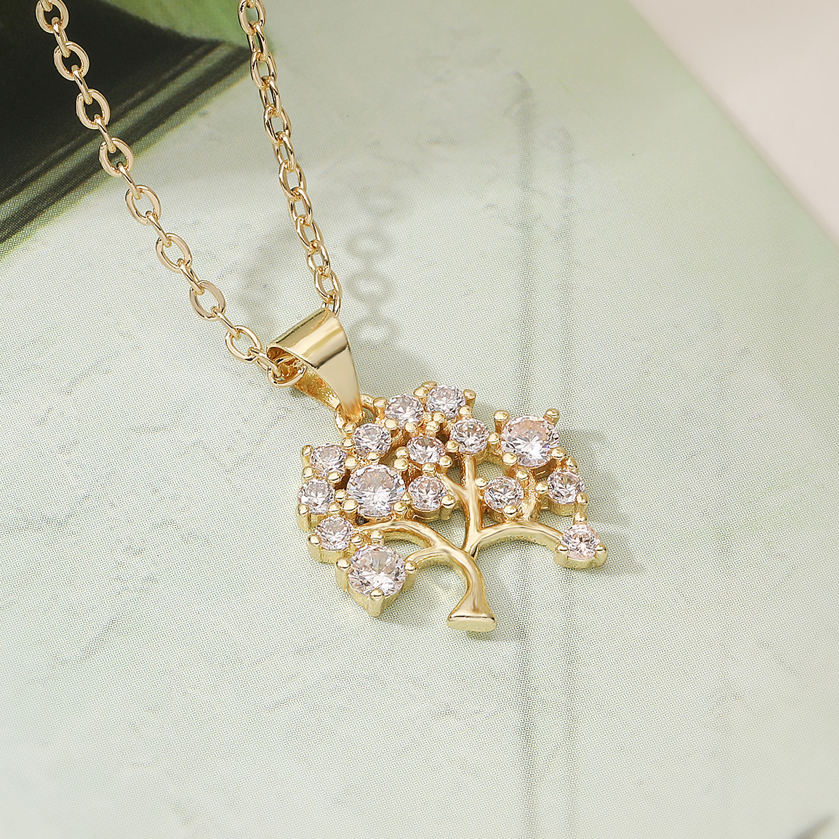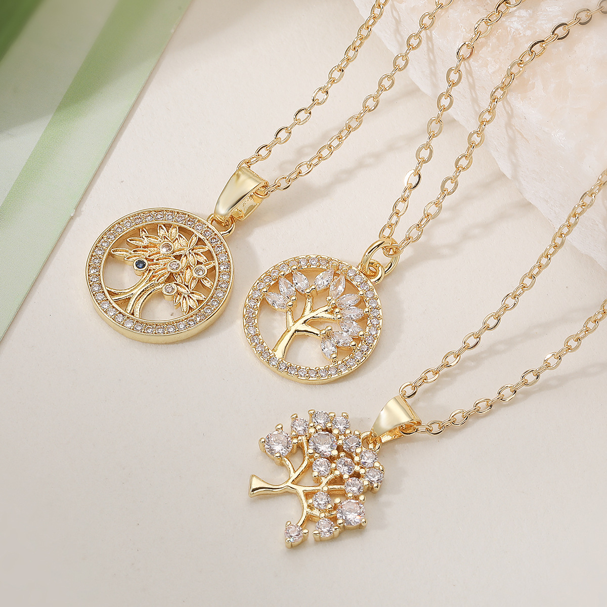 Collier en laiton cubique Zircon Micro Pave, Arbre de vie, Plaqué d'or, styles différents pour le choix & pavé de micro zircon & pour femme & creux, Vendu par PC
