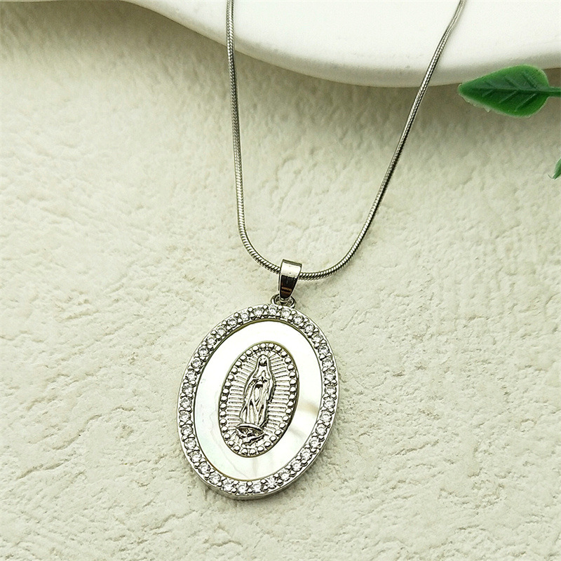 Collier en laiton cubique Zircon Micro Pave, avec coquille blanche, Placage, bijoux de mode & pavé de micro zircon & pour femme, argent, Vendu par PC
