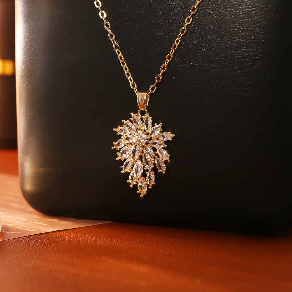 Collier en laiton cubique Zircon Micro Pave, feuille, styles différents pour le choix & pavé de micro zircon & pour femme, Vendu par PC