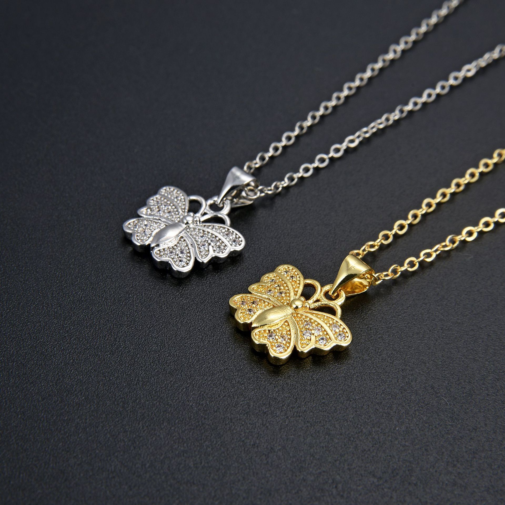 Collier en laiton cubique Zircon Micro Pave, avec 5cm chaînes de rallonge, papillon, bijoux de mode & pavé de micro zircon & pour femme, plus de couleurs à choisir, Longueur 45 cm, Vendu par PC