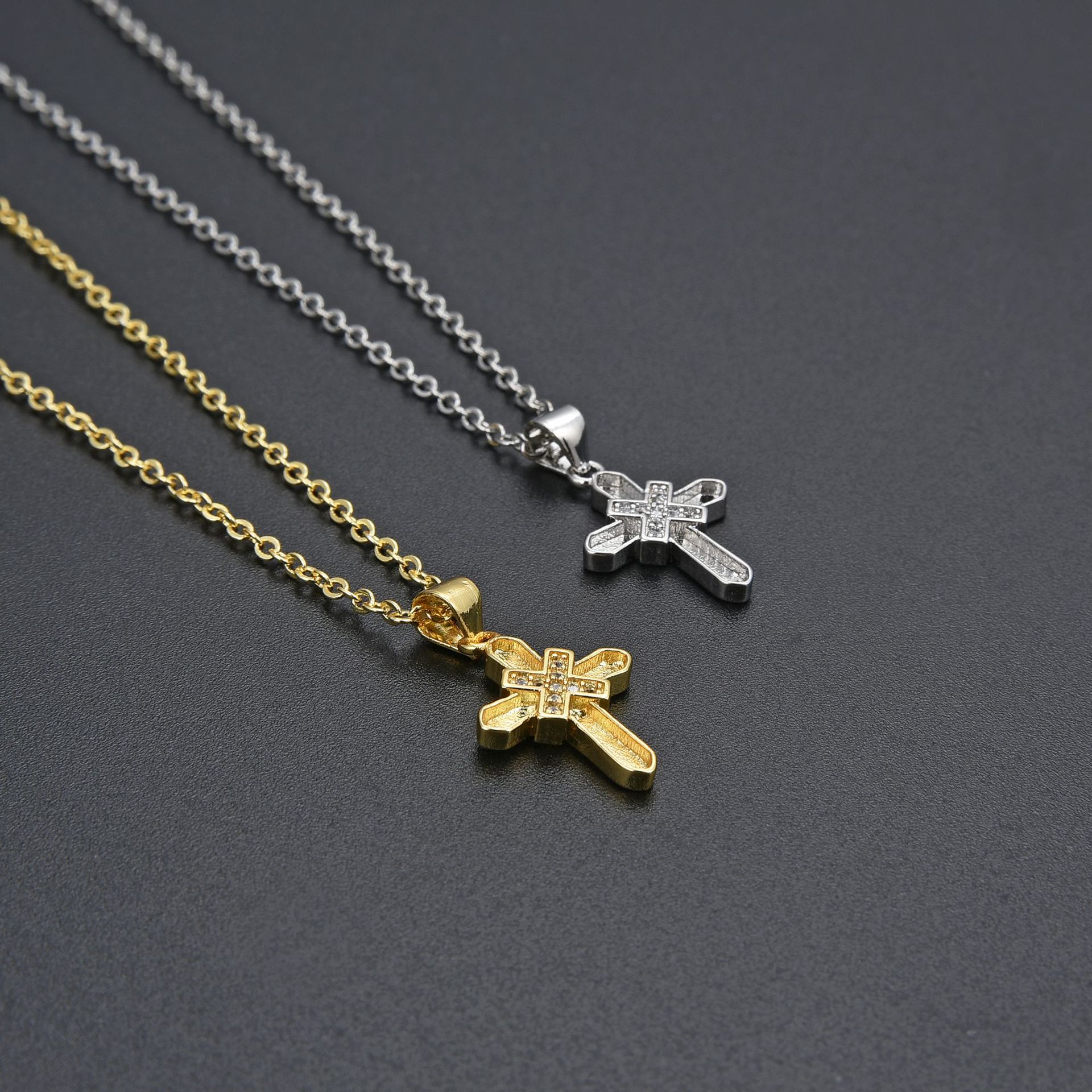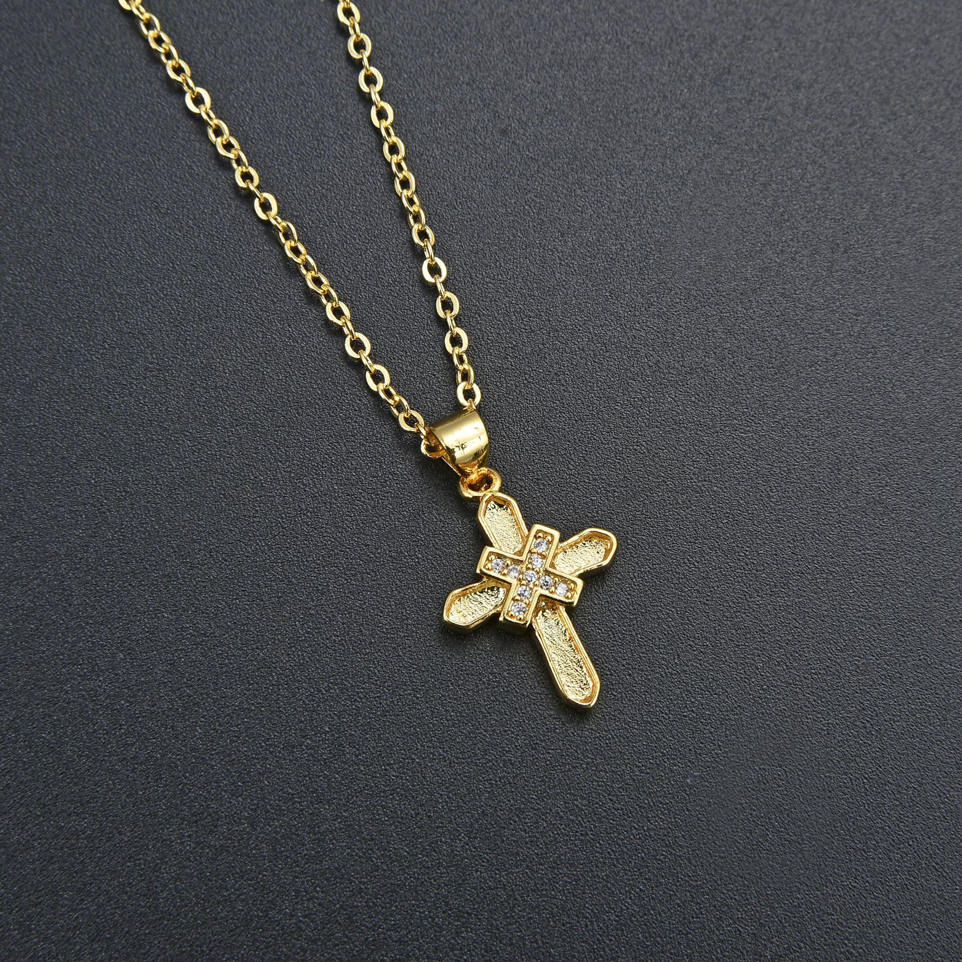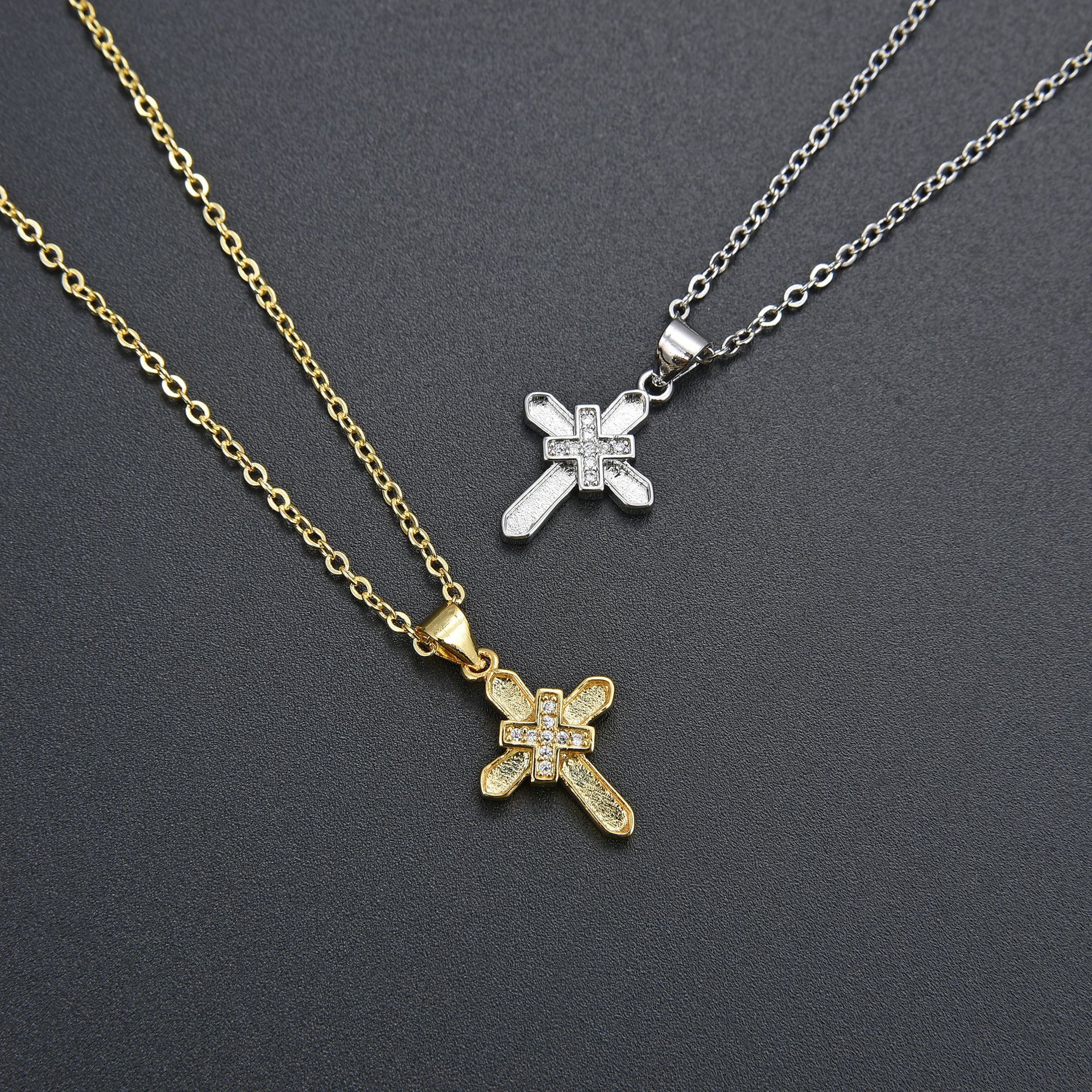 Collier en laiton cubique Zircon Micro Pave, avec 5cm chaînes de rallonge, croix, bijoux de mode & pavé de micro zircon & pour femme, plus de couleurs à choisir, Longueur 45 cm, Vendu par PC
