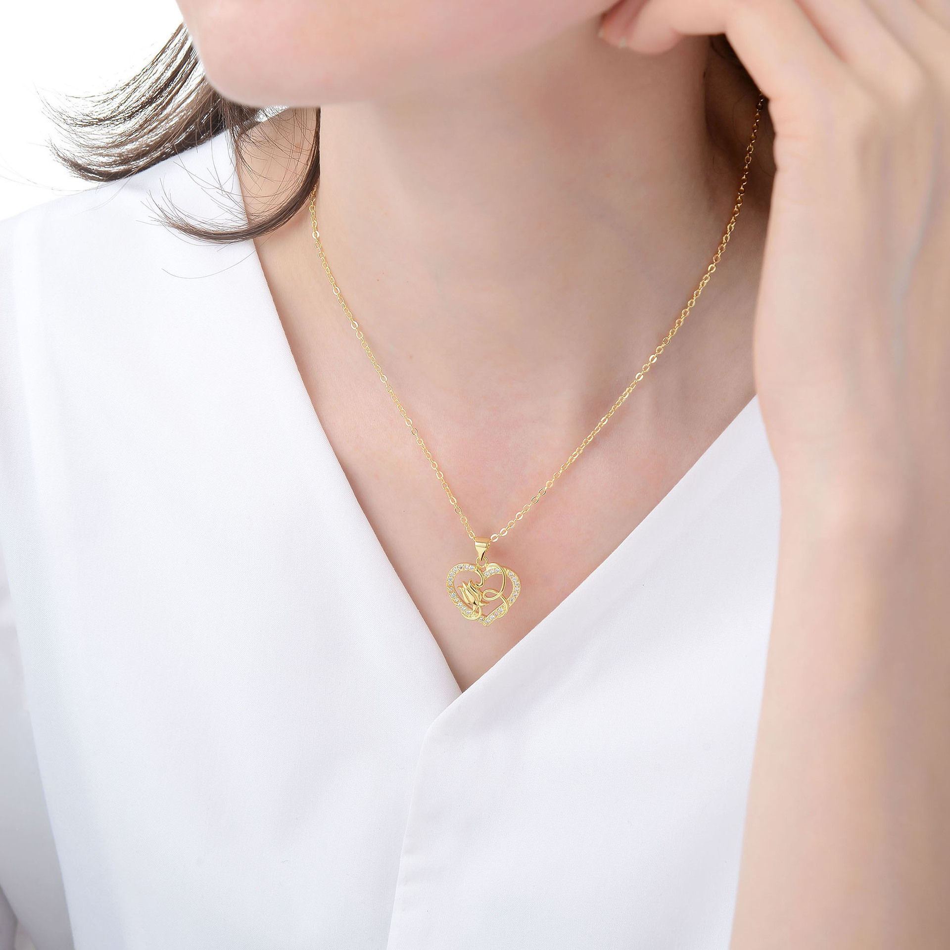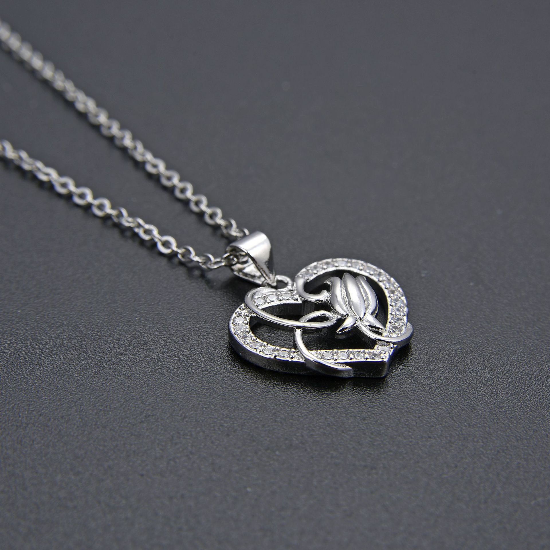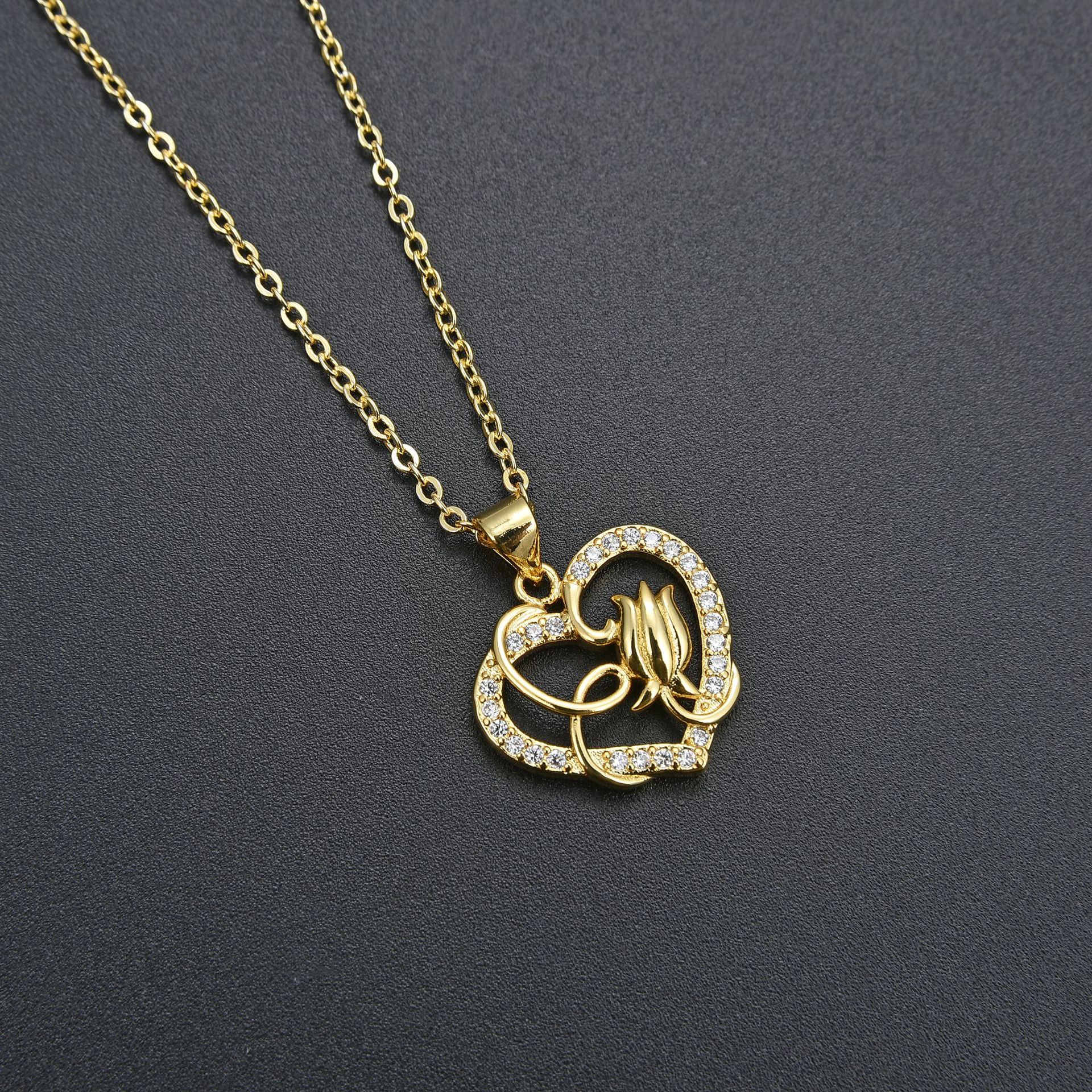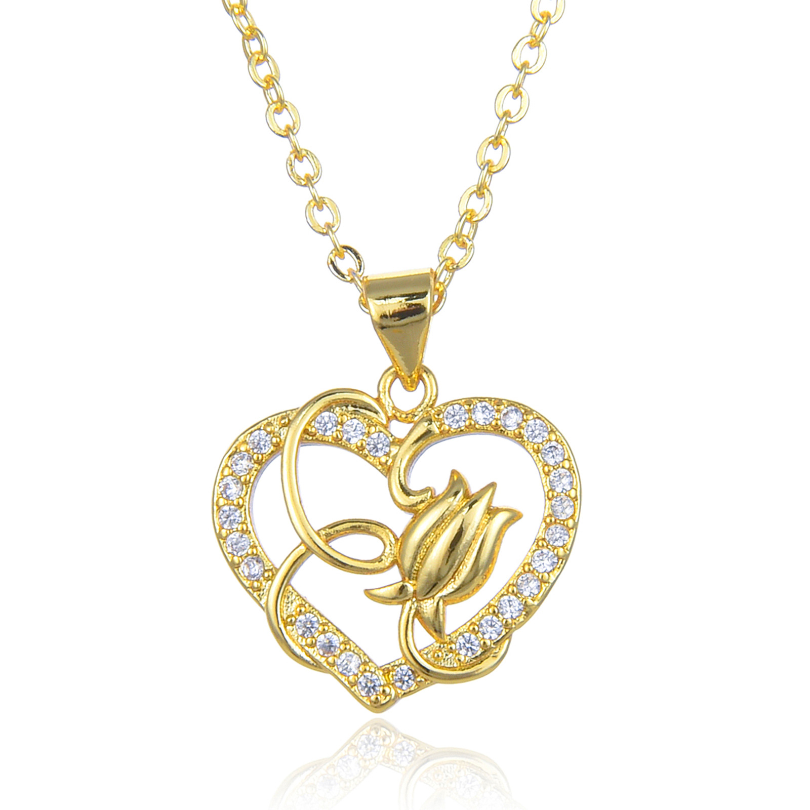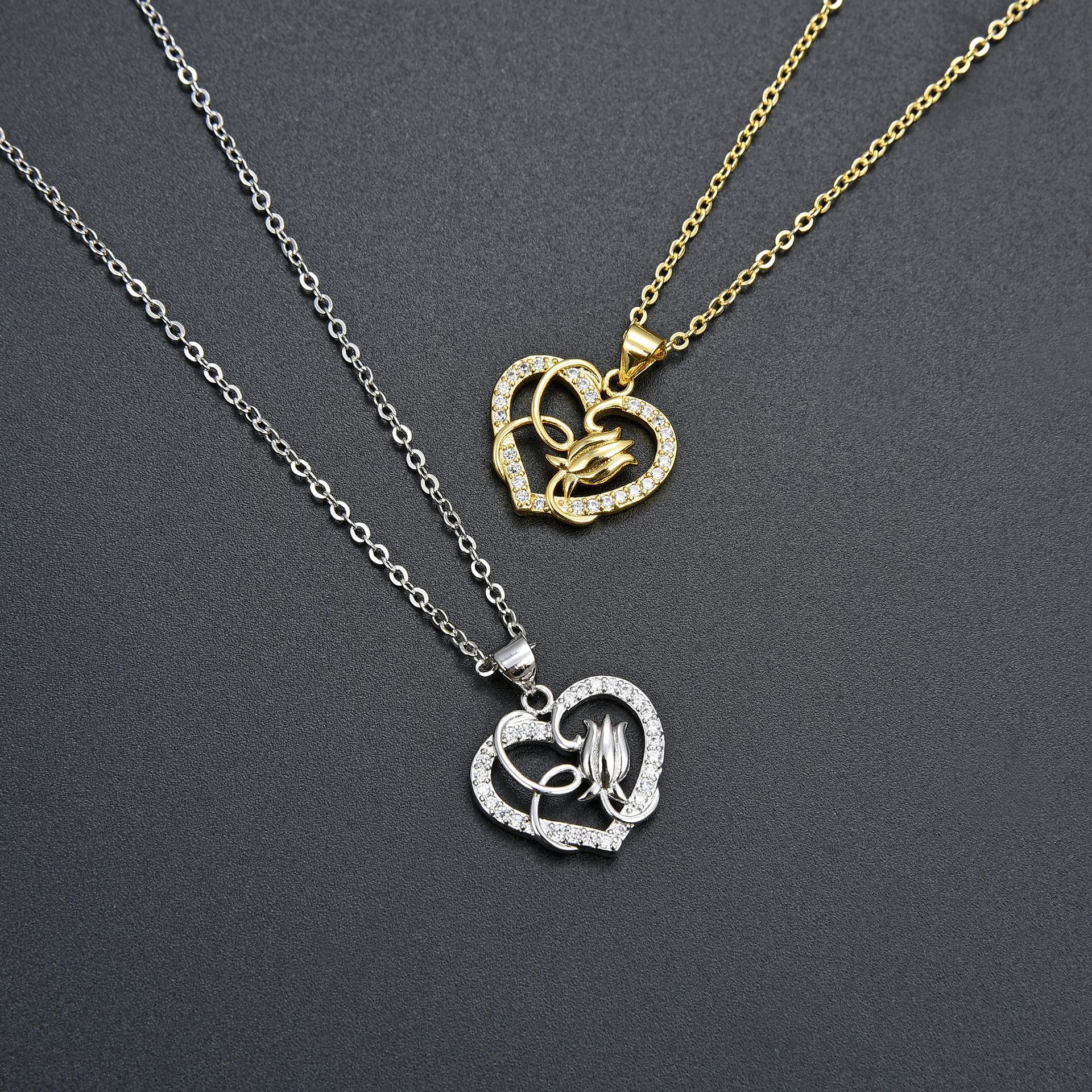 Collier en laiton cubique Zircon Micro Pave, avec 5cm chaînes de rallonge, coeur, pavé de micro zircon & pour femme & creux, plus de couleurs à choisir, Longueur 45 cm, Vendu par PC