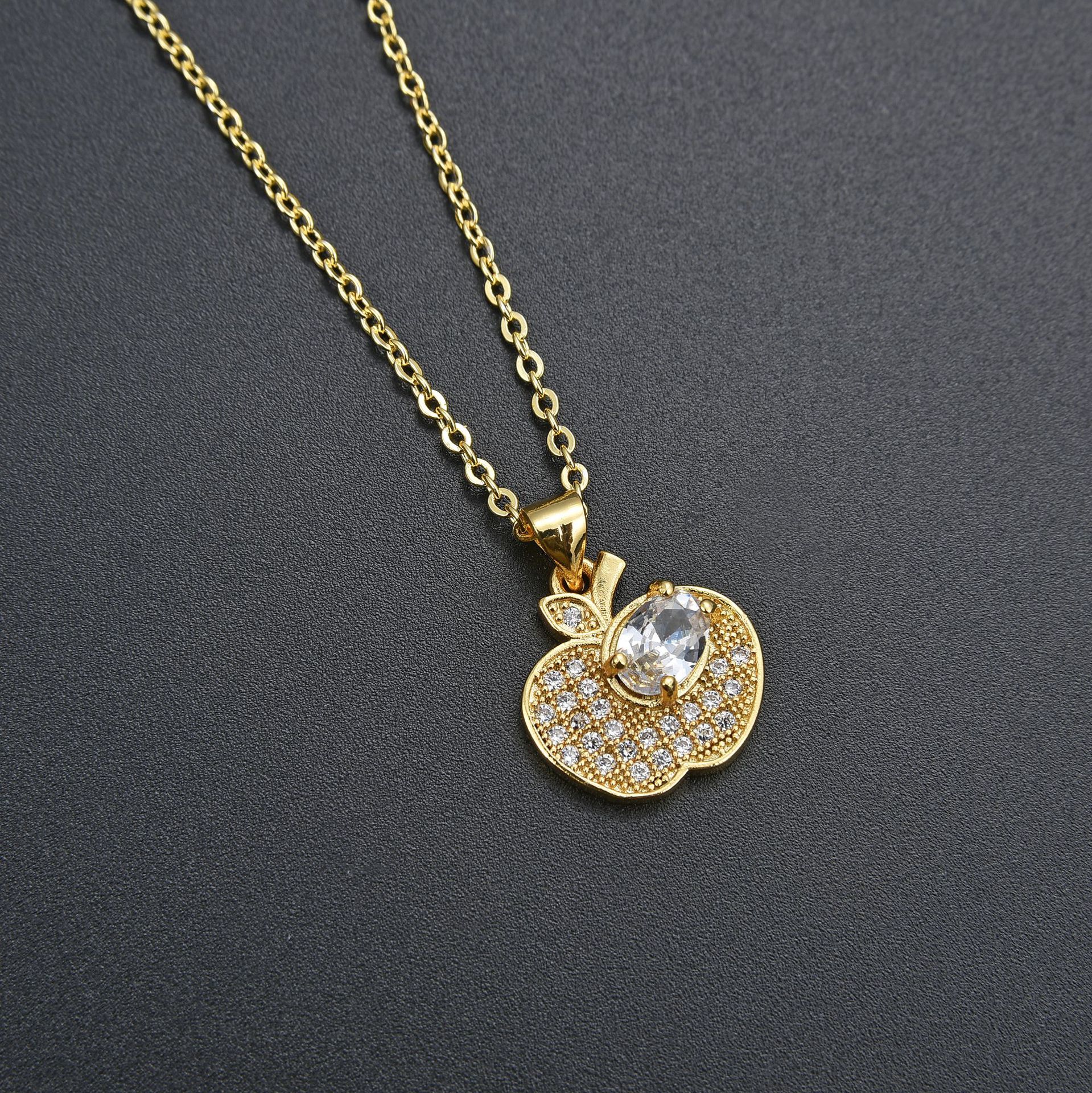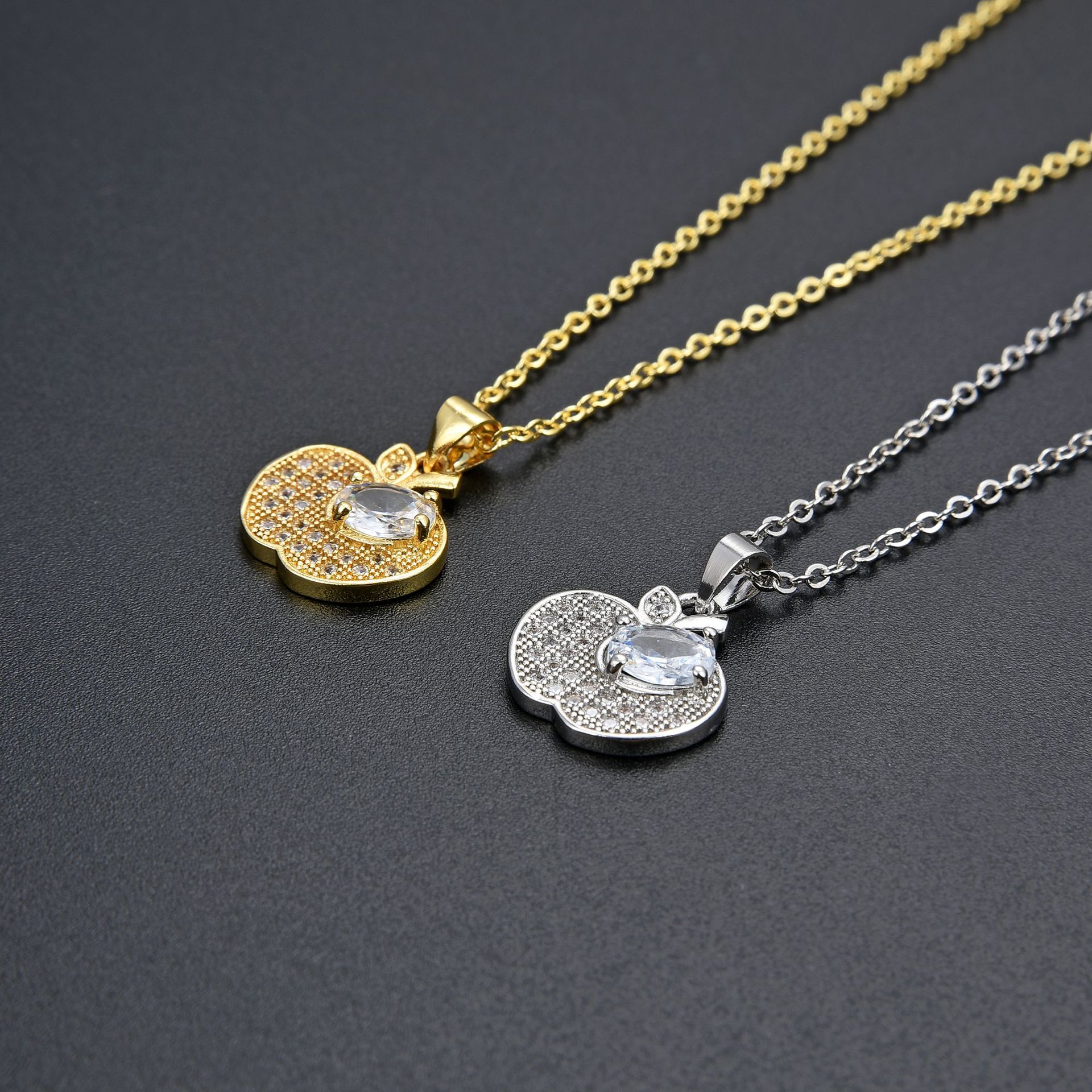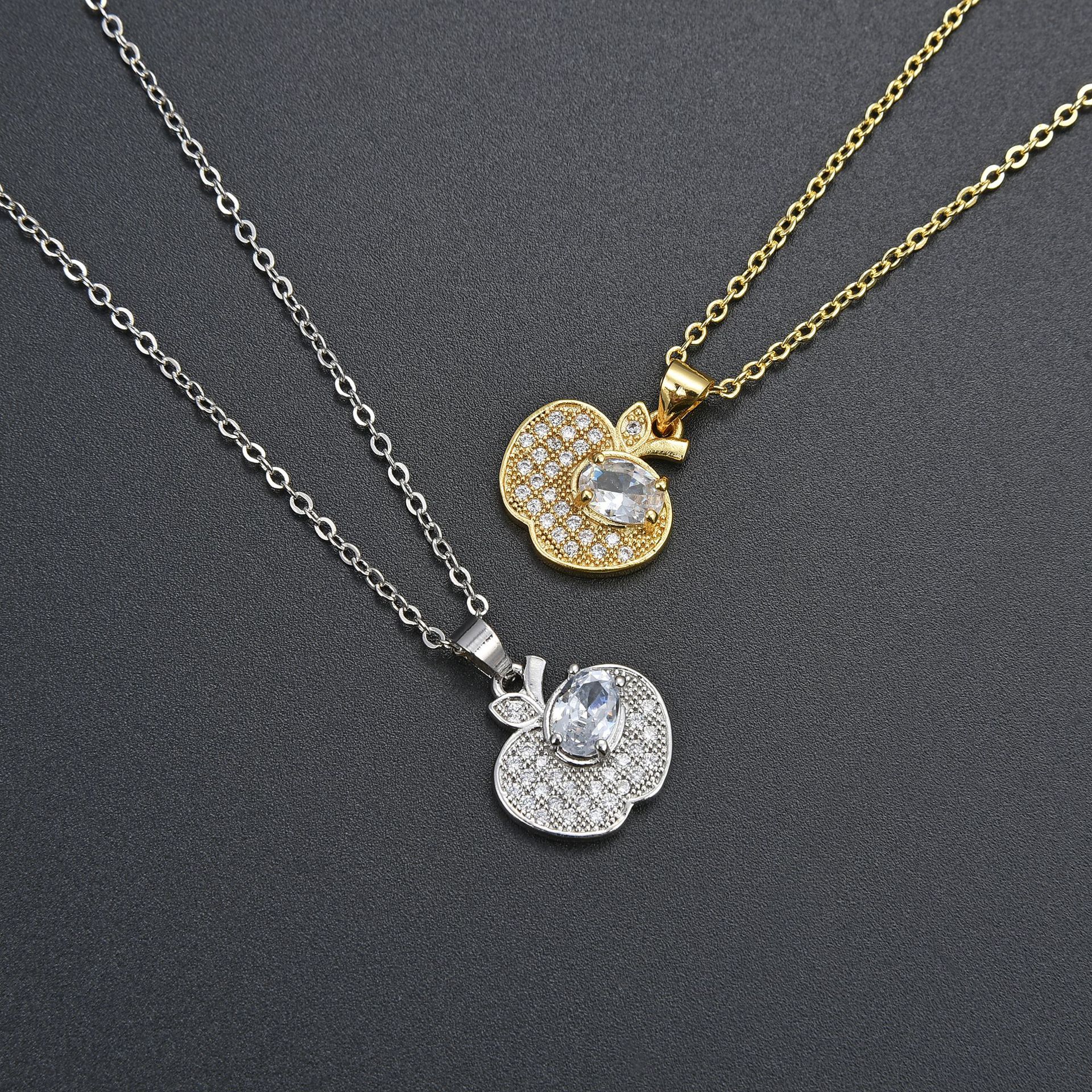 Collier en laiton cubique Zircon Micro Pave, avec 5cm chaînes de rallonge, pomme, bijoux de mode & pavé de micro zircon & pour femme, plus de couleurs à choisir, Longueur 45 cm, Vendu par PC