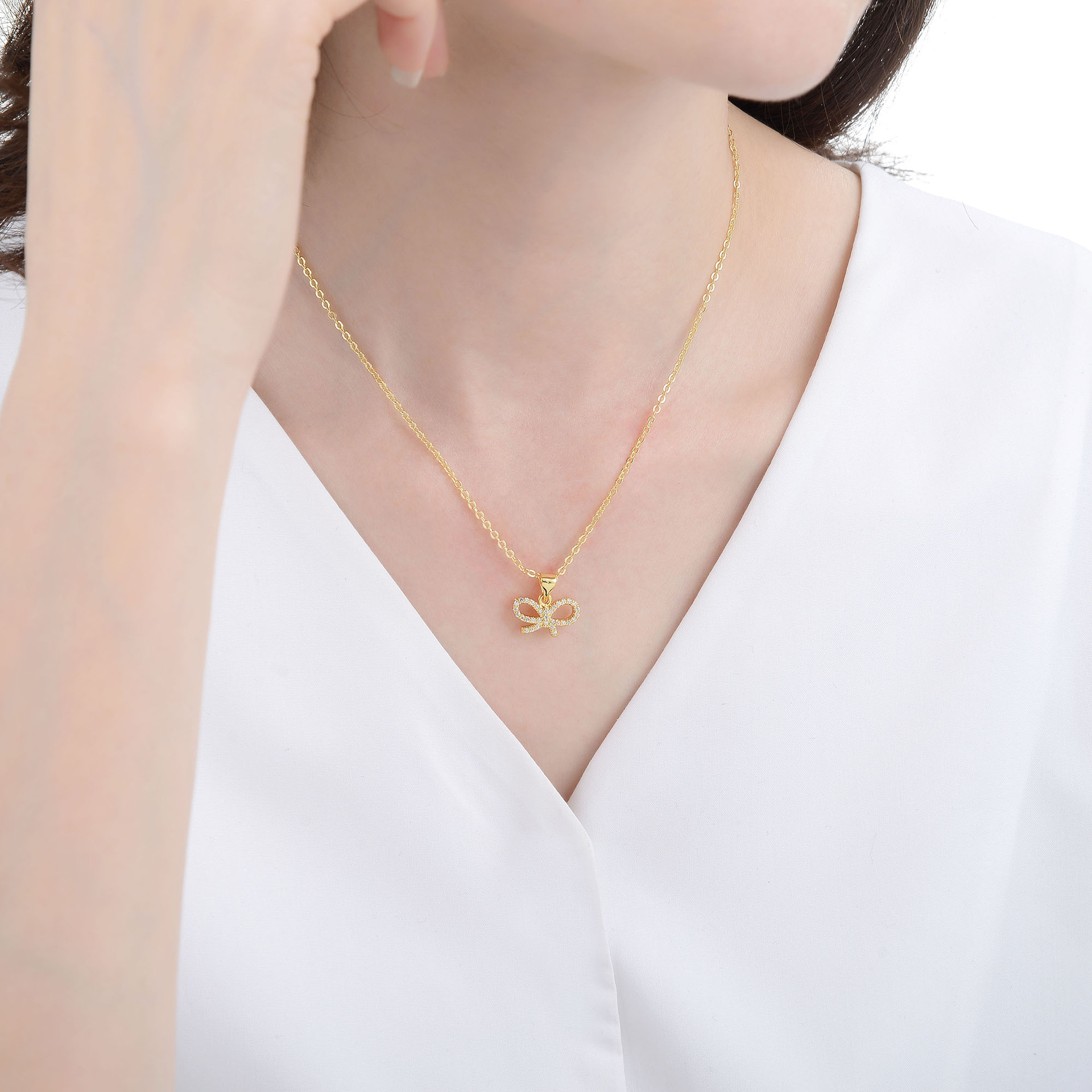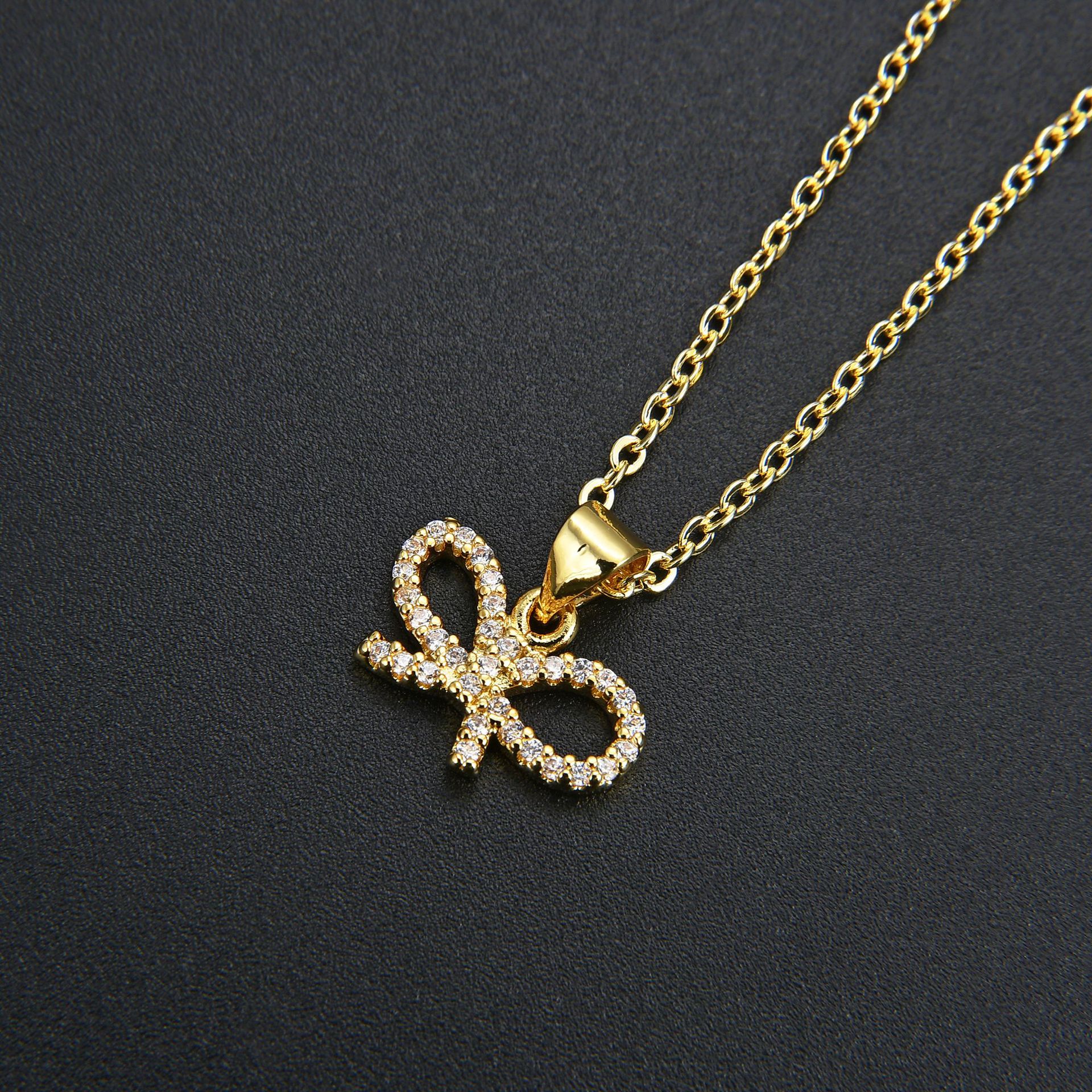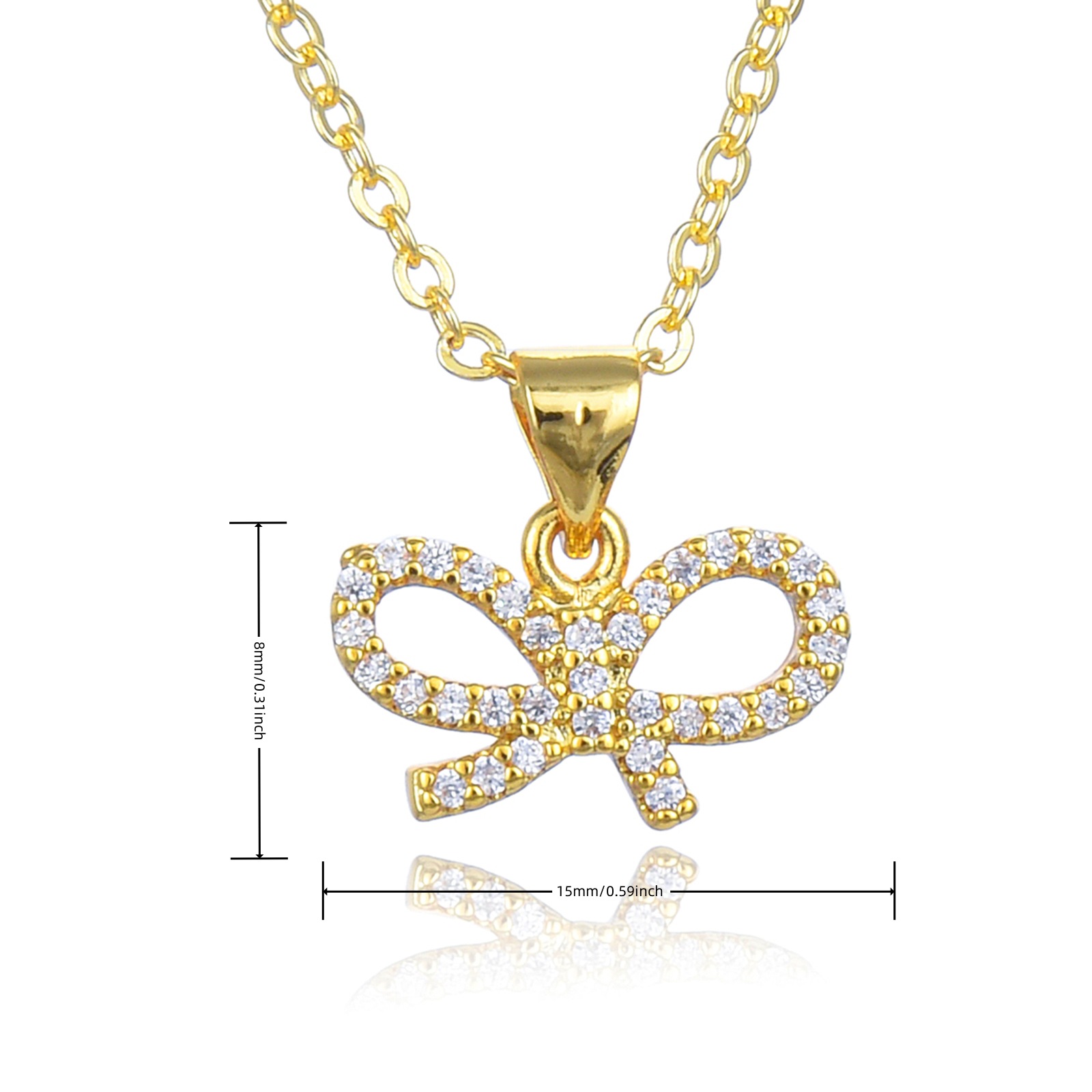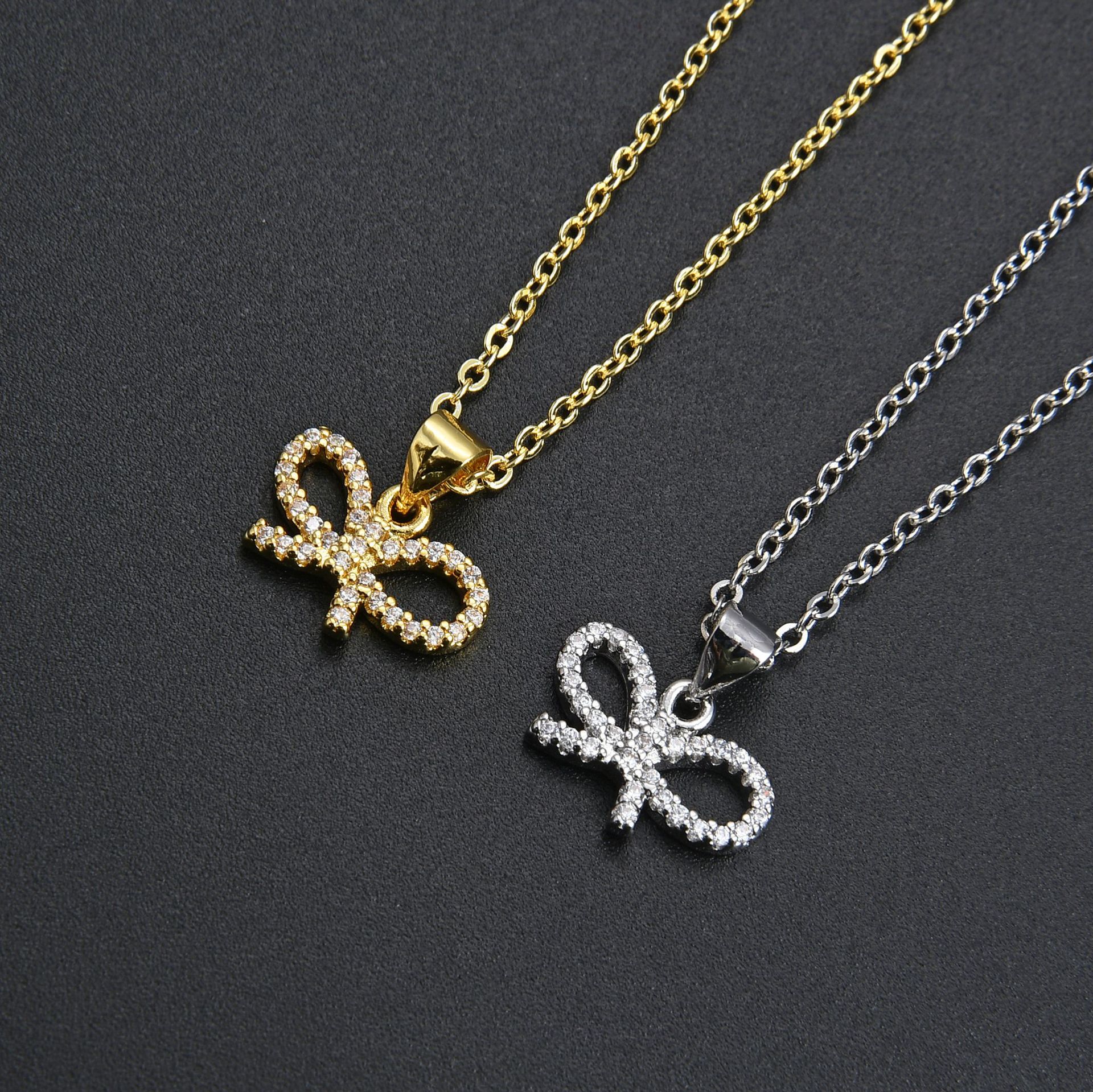 Collier en laiton cubique Zircon Micro Pave, avec 5cm chaînes de rallonge, Noeud papillon, pavé de micro zircon & pour femme & creux, plus de couleurs à choisir, Longueur 45 cm, Vendu par PC
