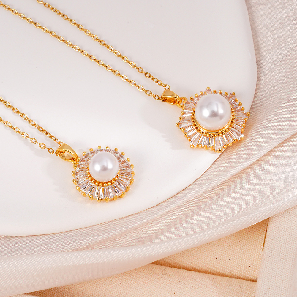 Collier en laiton cubique Zircon Micro Pave, avec perle de plastique, Placage, styles différents pour le choix & pavé de micro zircon & pour femme, doré, Vendu par PC