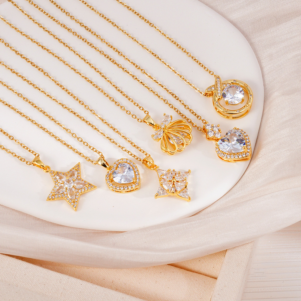 Collier en laiton cubique Zircon Micro Pave, Placage de couleur d'or, styles différents pour le choix & pavé de micro zircon & pour femme, plus de couleurs à choisir, Vendu par PC