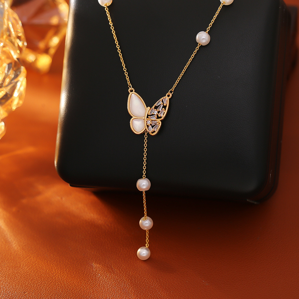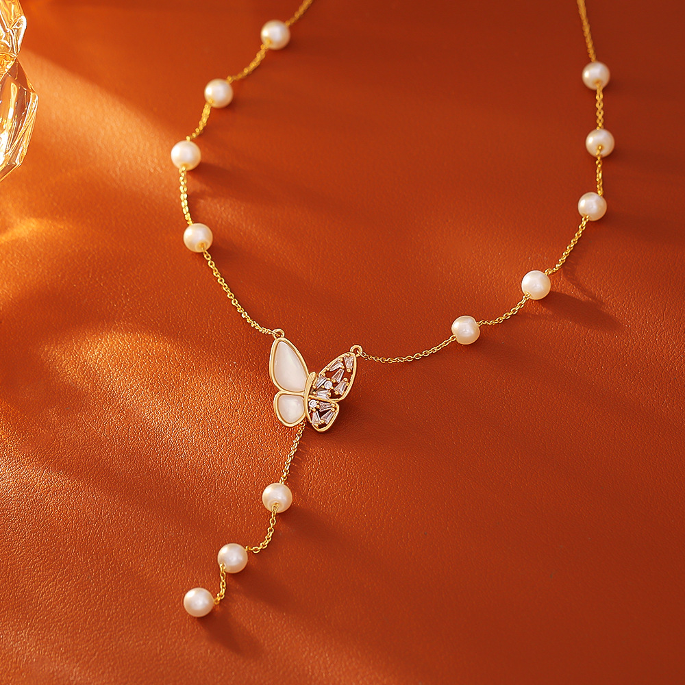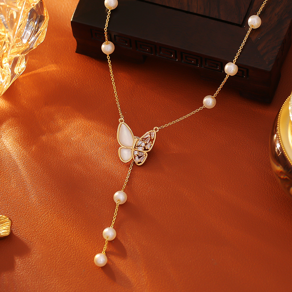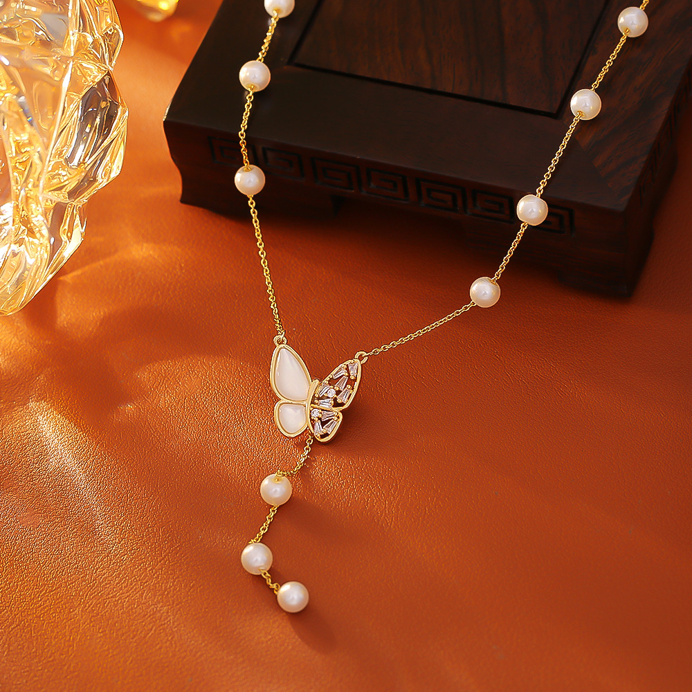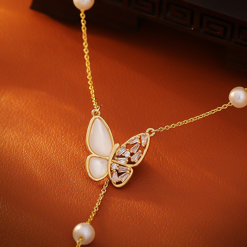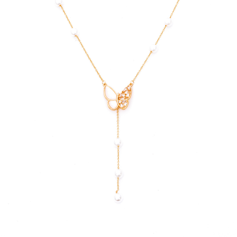 Collier en laiton cubique Zircon Micro Pave, avec perle de plastique, Placage, bijoux de mode & pavé de micro zircon & pour femme, doré, Longueur Environ 45 cm, Vendu par PC
