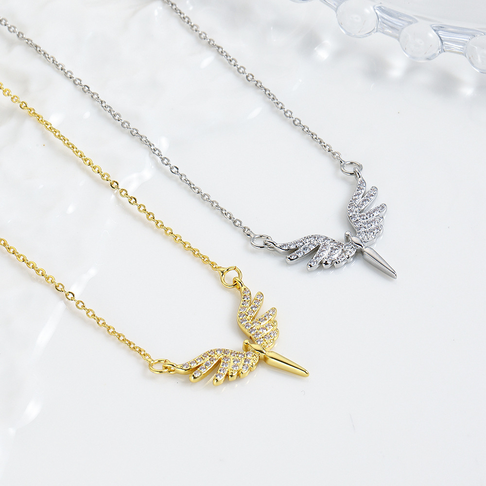 Collier en laiton, ange, Placage, pour femme & avec strass, plus de couleurs à choisir, protéger l'environnement, sans nickel, plomb et cadmium, Vendu par PC