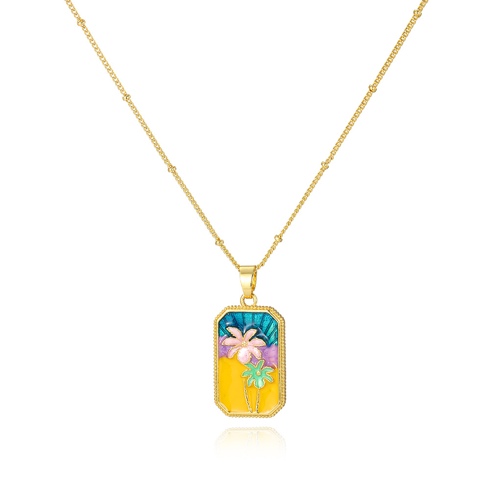 Collier en laiton, rectangle, Placage de couleur d'or, DIY & modèles différents pour le choix & émail, plus de couleurs à choisir, protéger l'environnement, sans nickel, plomb et cadmium, Vendu par PC