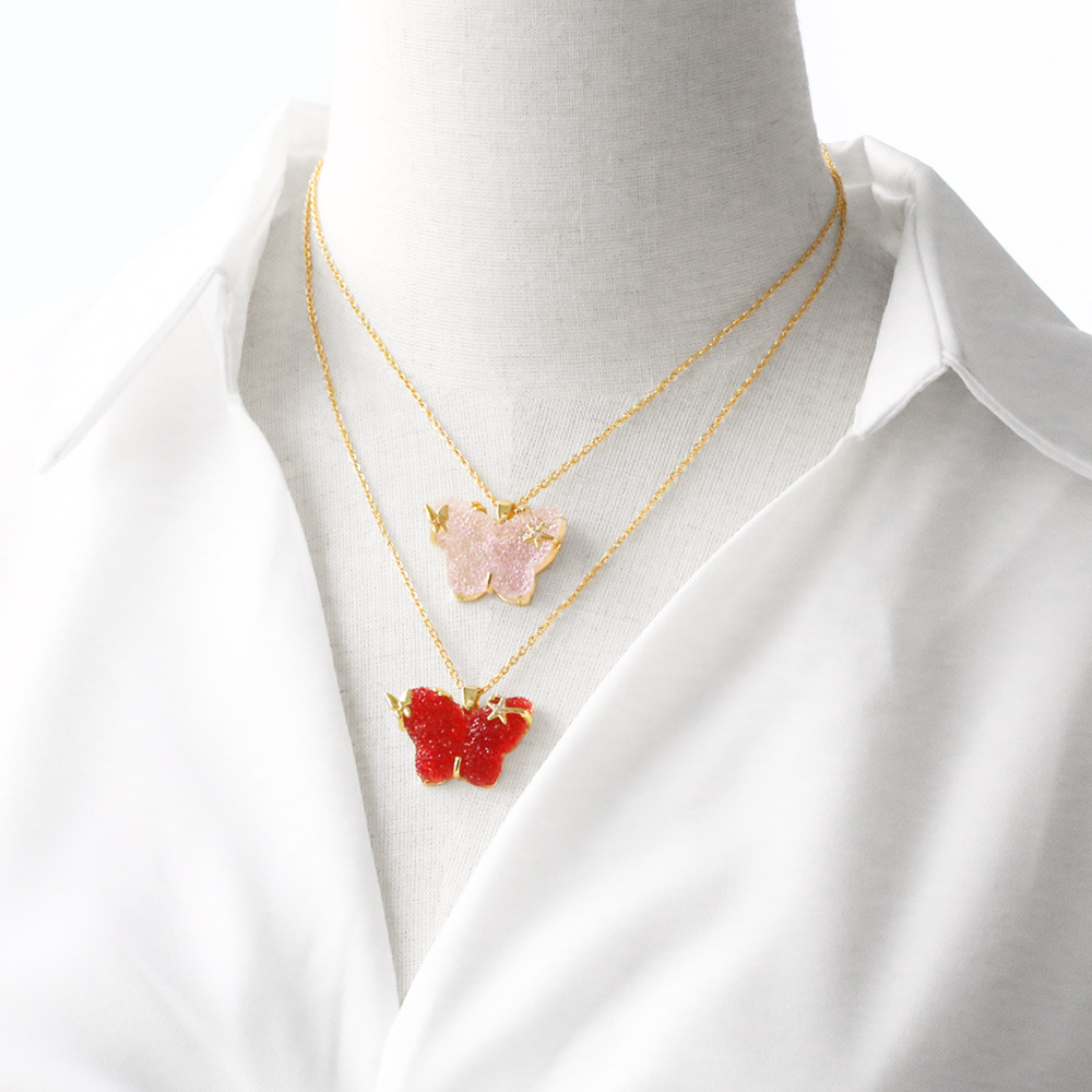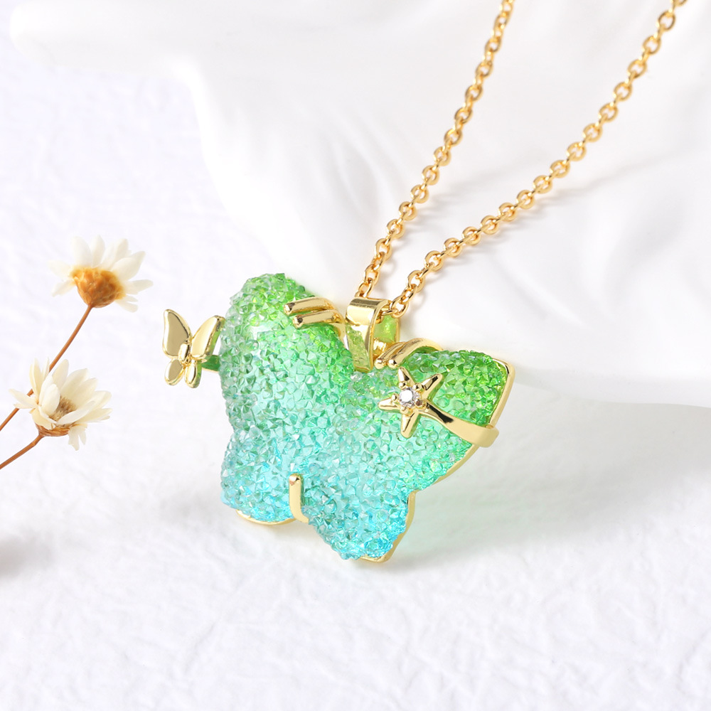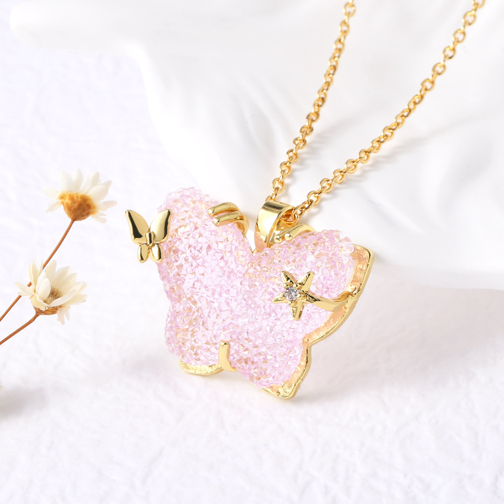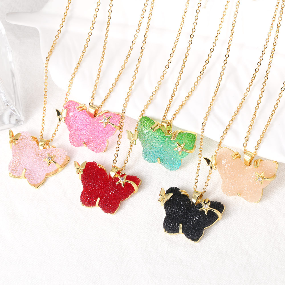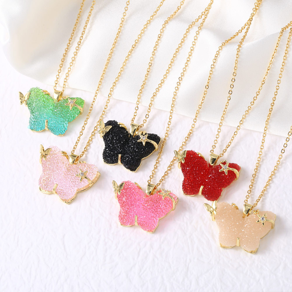 Collier en laiton, avec Acrylique, avec 5cm chaînes de rallonge, papillon, Placage de couleur d'or, bijoux de mode, plus de couleurs à choisir, protéger l'environnement, sans nickel, plomb et cadmium, Longueur 45 cm, Vendu par PC