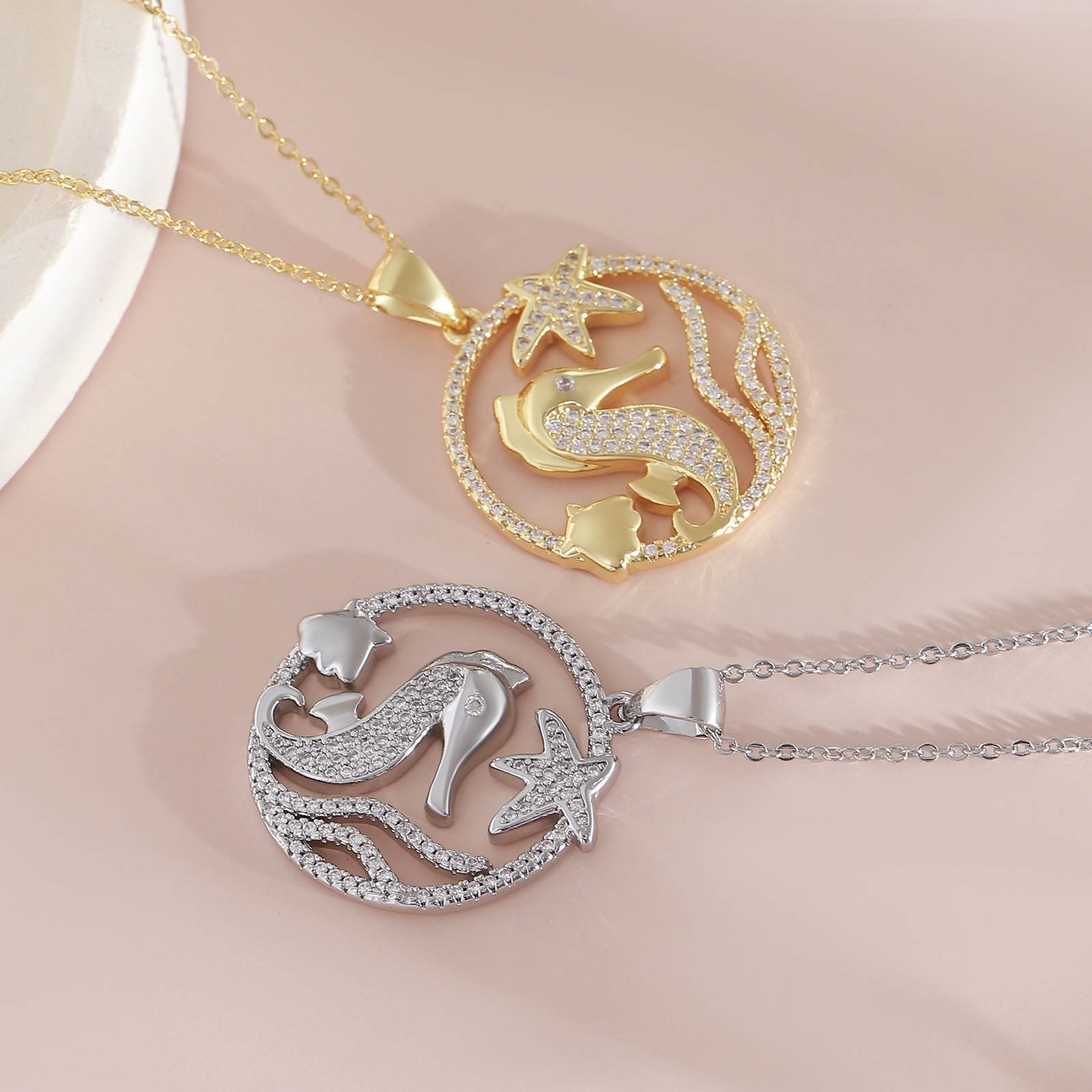 1:Golden necklace2:White gold necklace3:Golden pendant4:White gold pendant