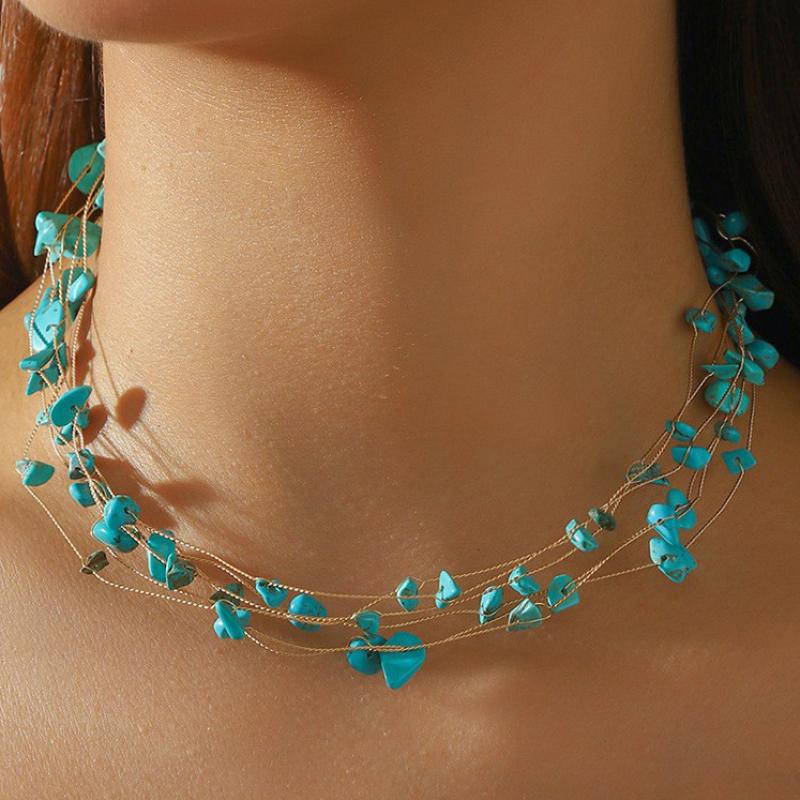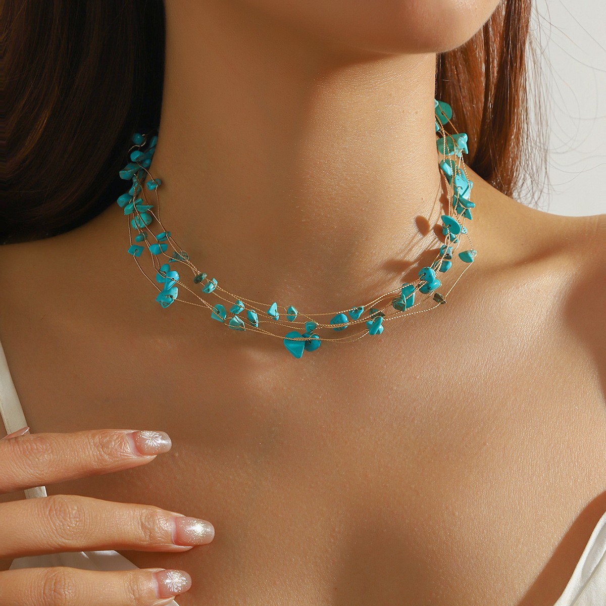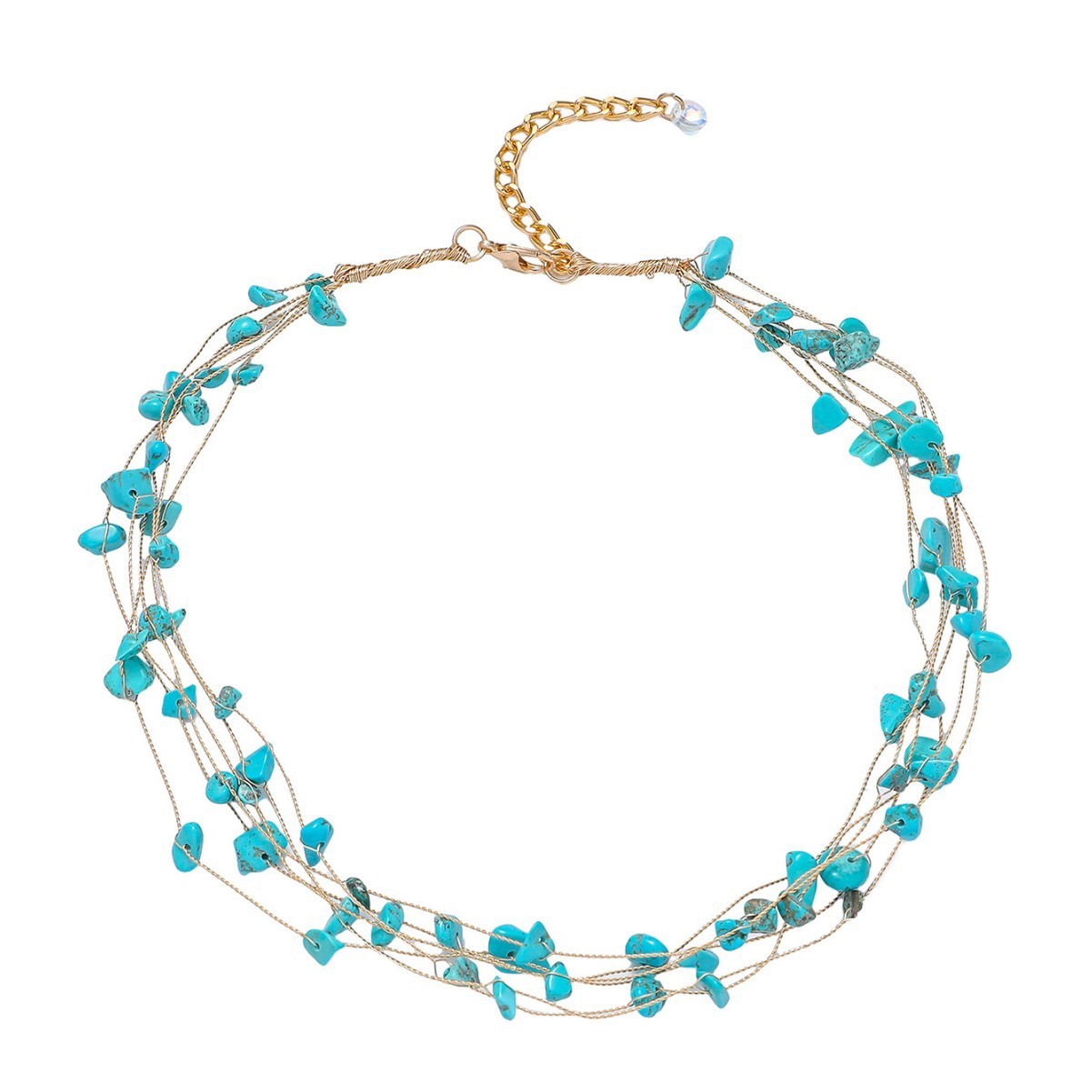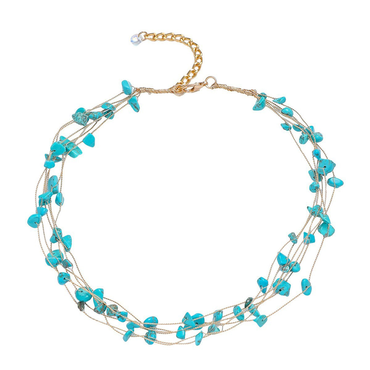 Collier en laiton, avec turquoise, Placage, bijoux de mode & pour femme, Vendu par PC