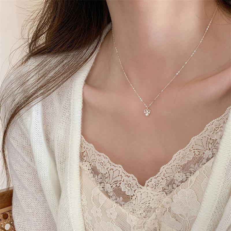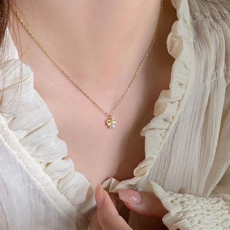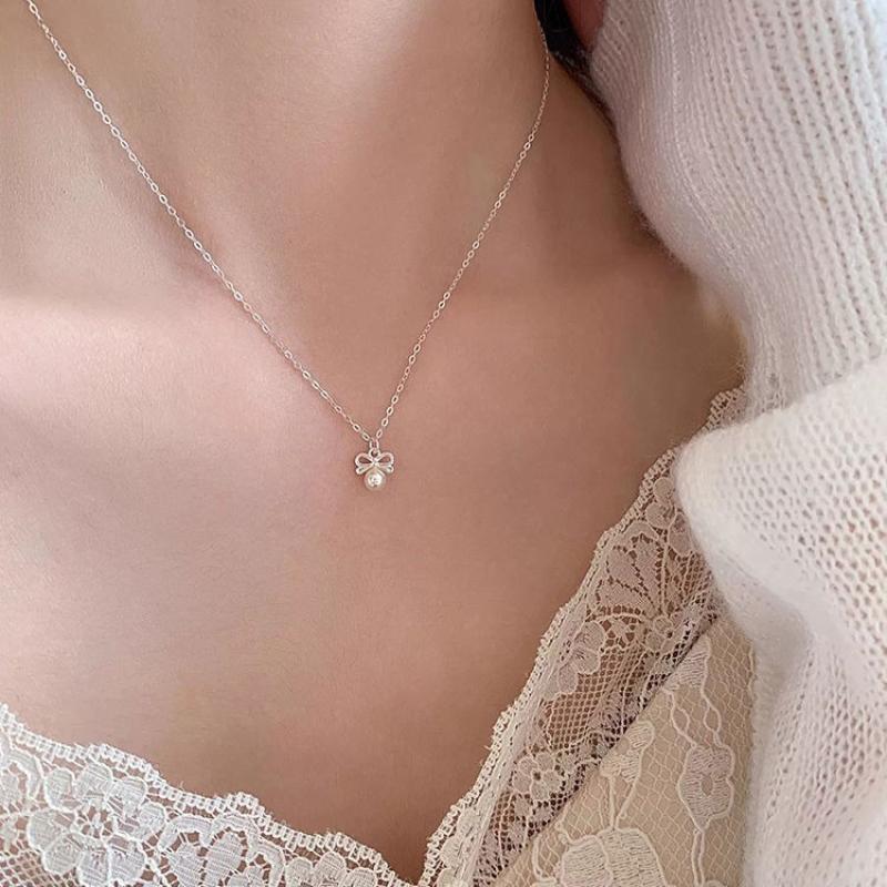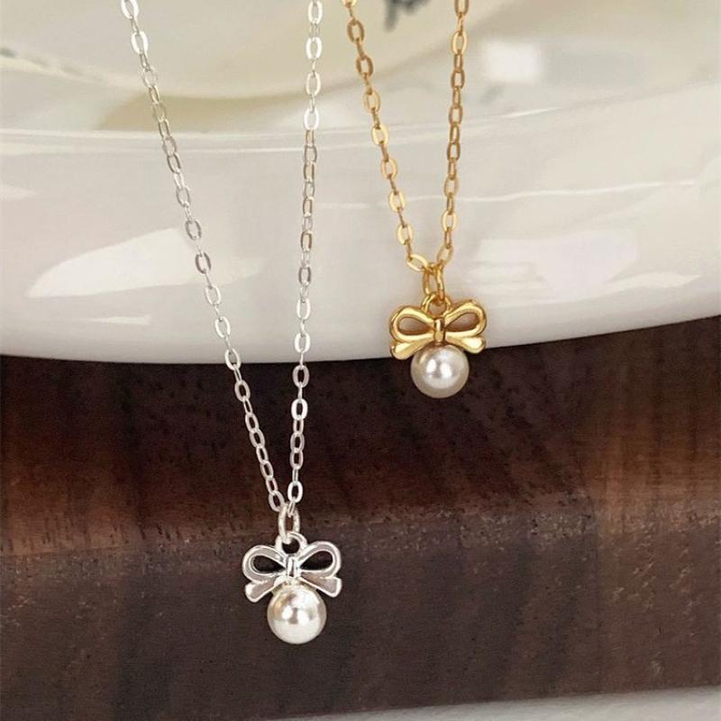 1:Pearl bow necklace silver plated2:Pearl bow necklace gold color