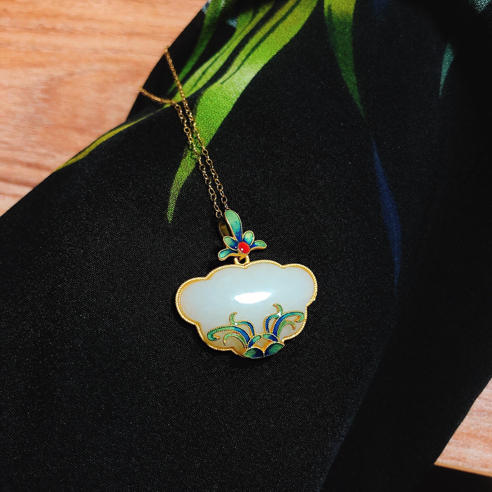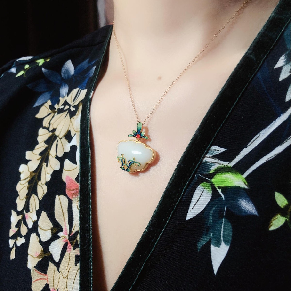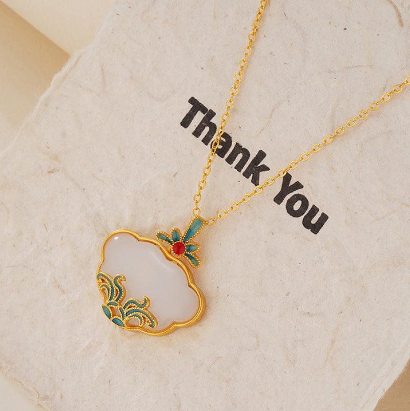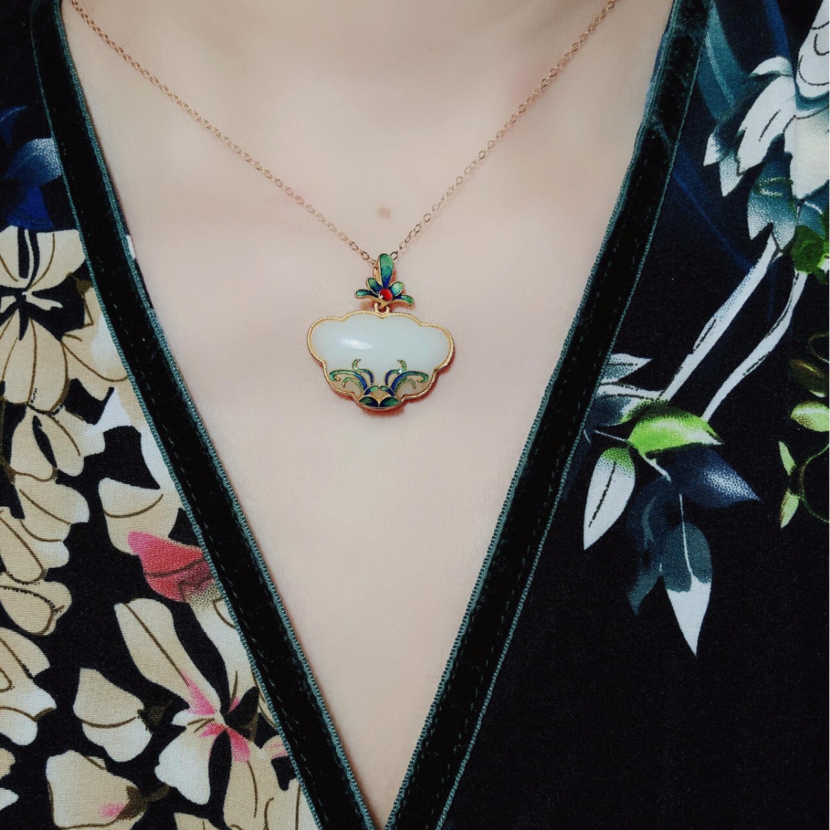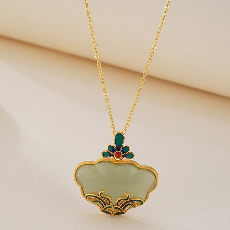 1:Green jade lotus ruyi lock necklace2:White jade lotus ruyi lock necklace