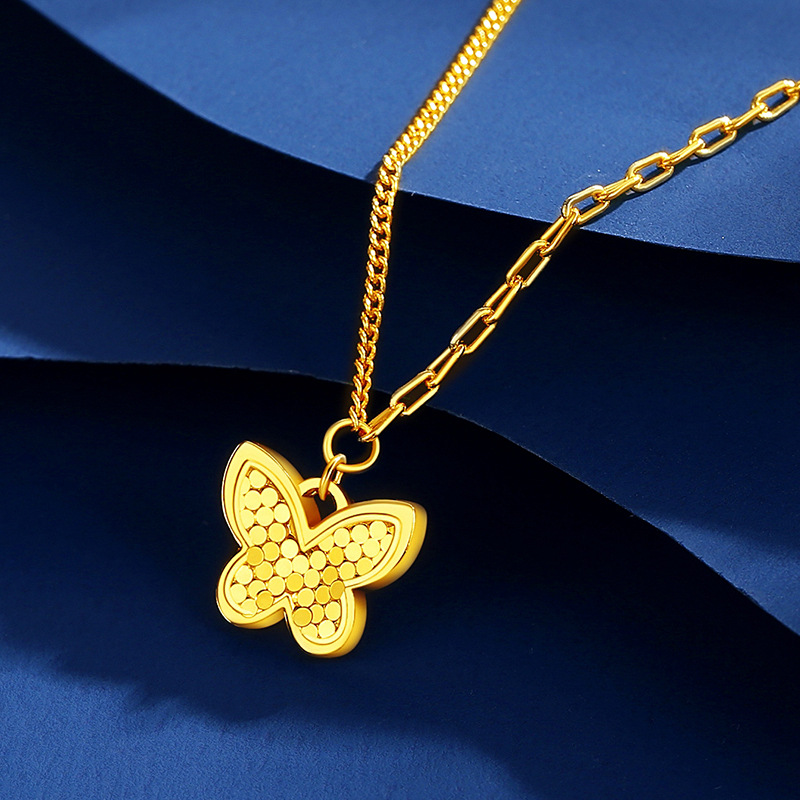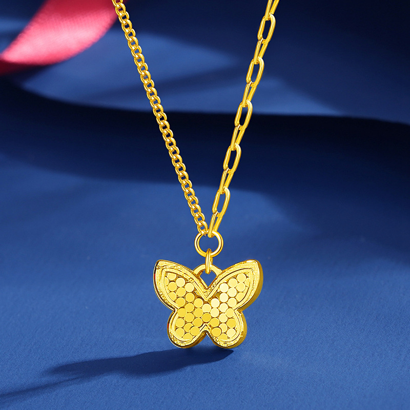 Collier en laiton, papillon, Placage, bijoux de mode, doré, protéger l'environnement, sans nickel, plomb et cadmium, 10.39x12.96mm, Longueur Environ 45 cm, Vendu par PC