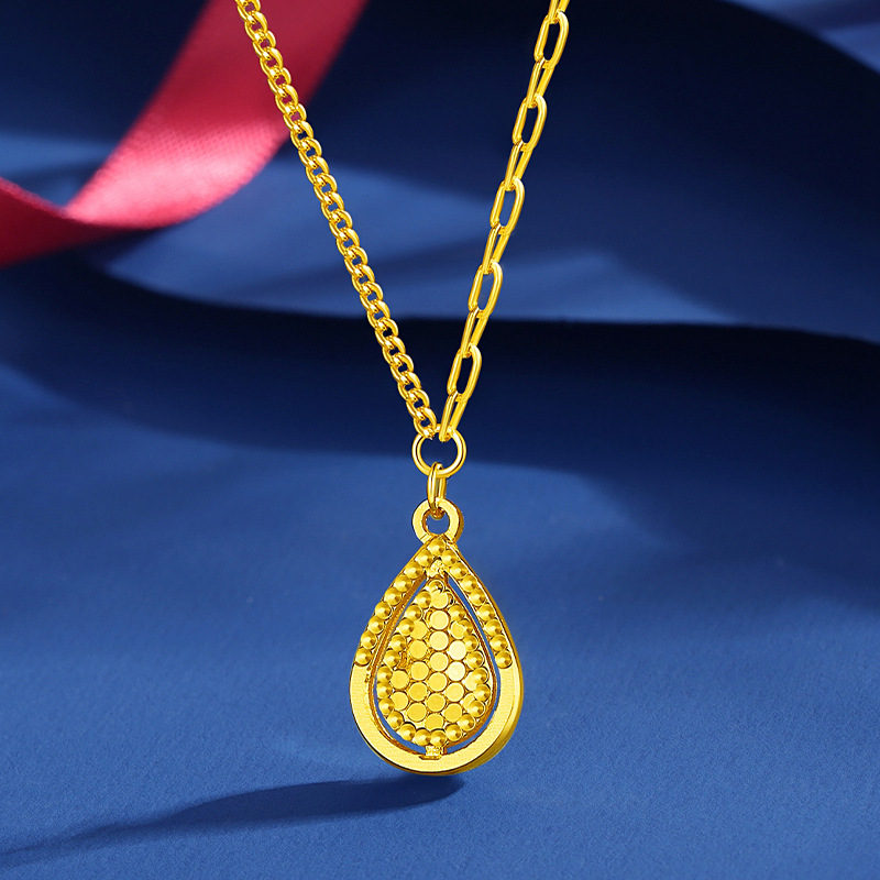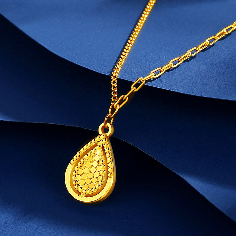 Collier en laiton, larme, Placage, bijoux de mode, doré, protéger l'environnement, sans nickel, plomb et cadmium, 17x10.70mm, Longueur Environ 45 cm, Vendu par PC