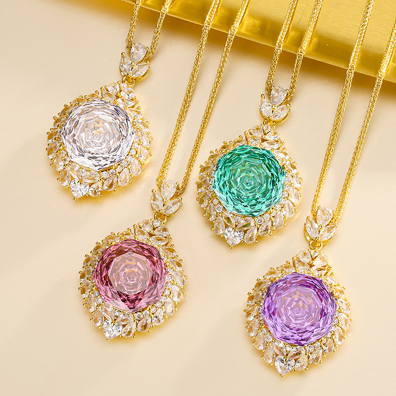 Collier en laiton, avec zircon cubique, avec 5cm chaînes de rallonge, Placage de couleur d'or, bijoux de mode & pour femme & avec strass, plus de couleurs à choisir, Longueur 45 cm, Vendu par PC