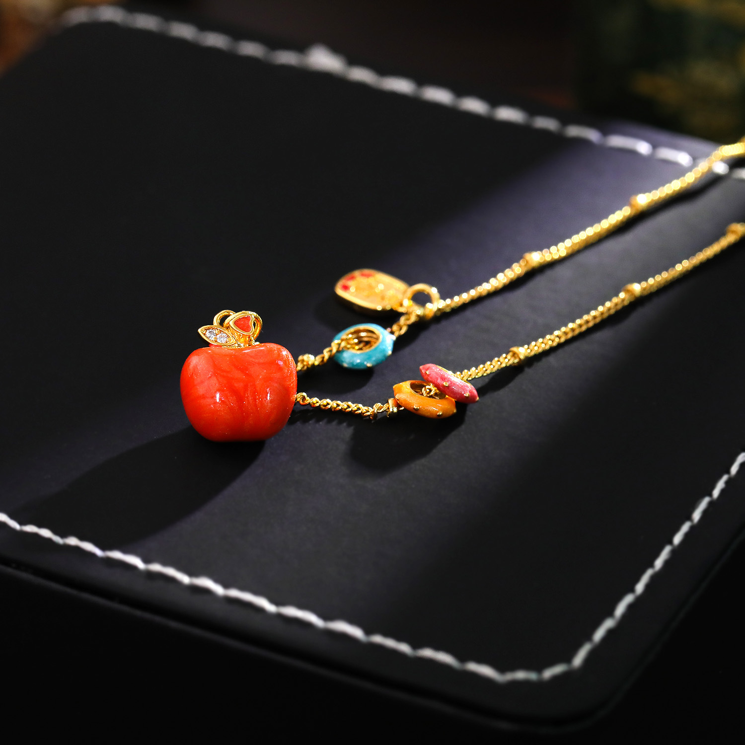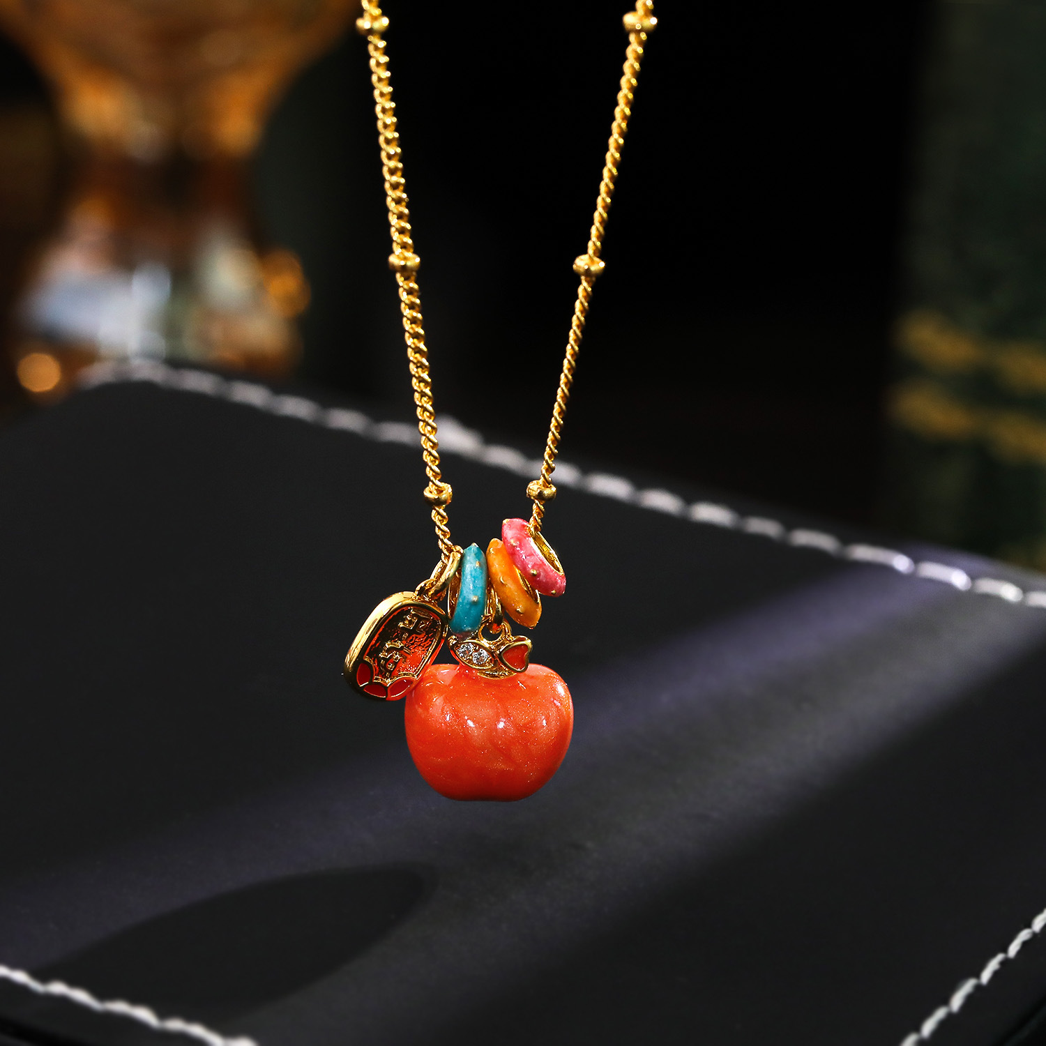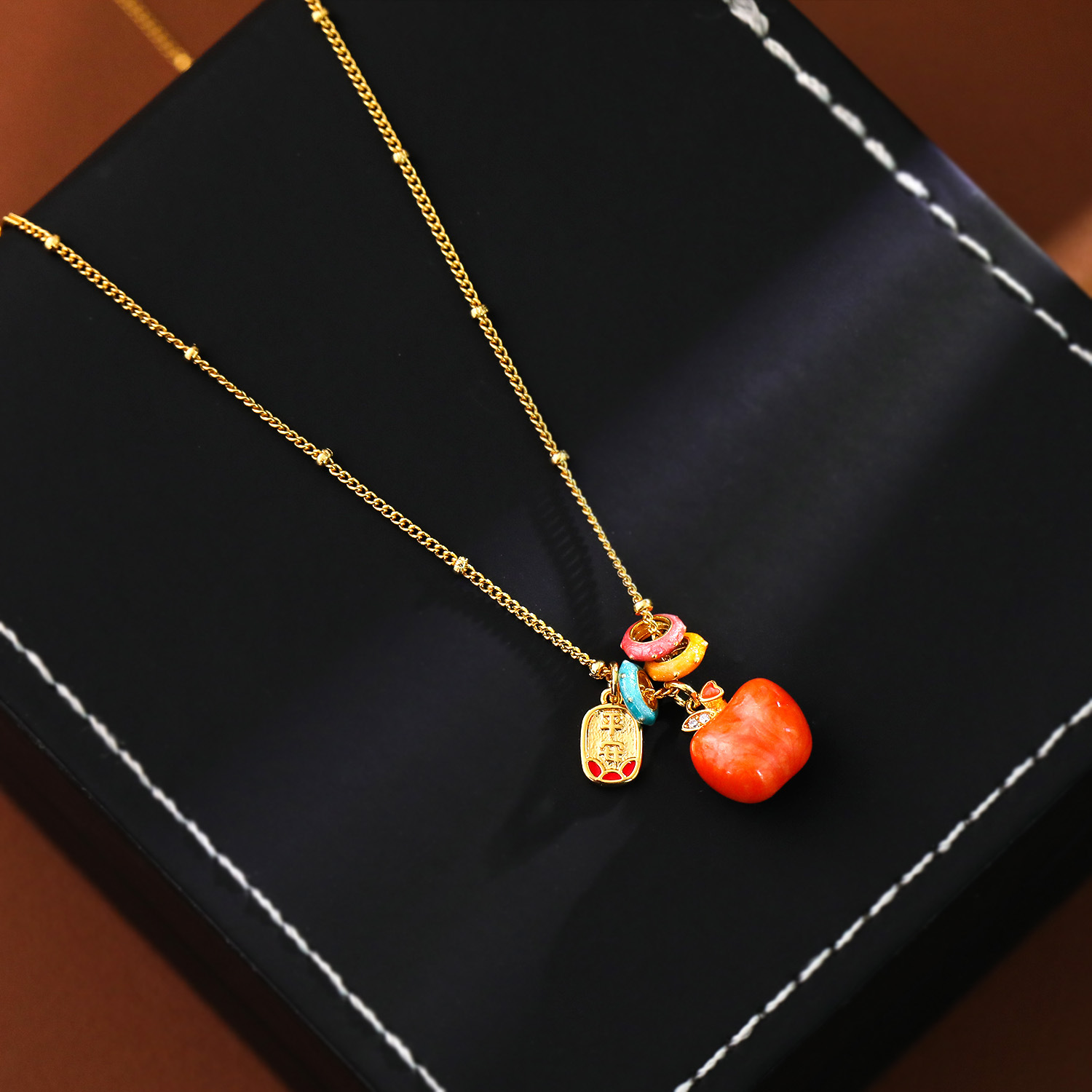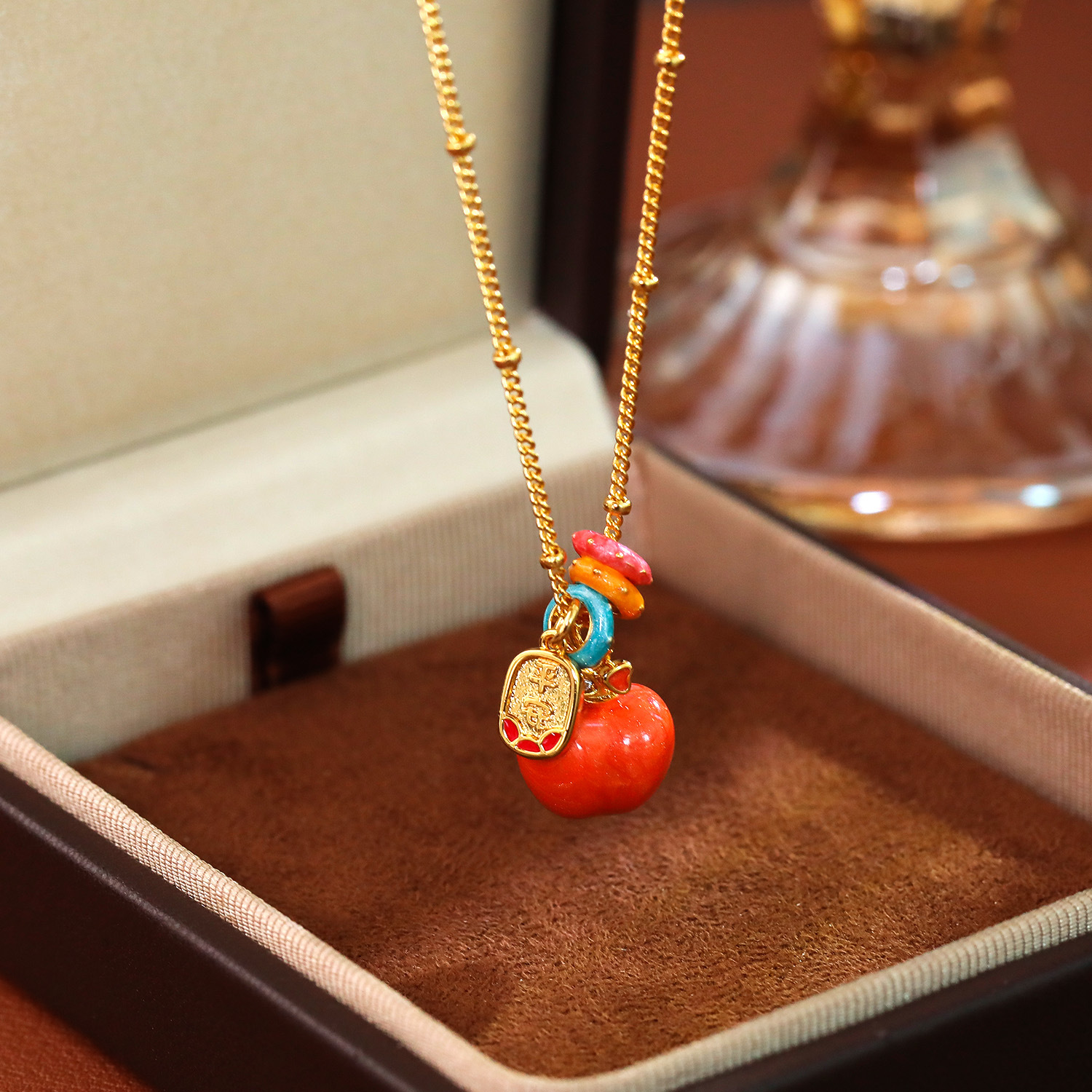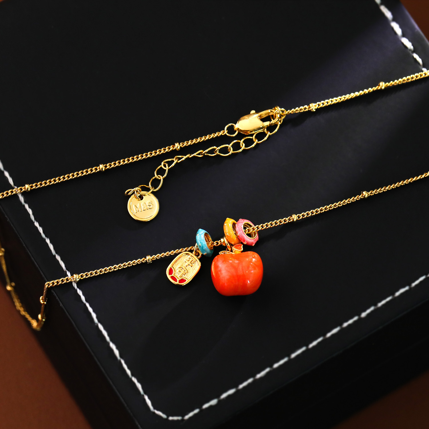 Collier en laiton, avec 5cm chaînes de rallonge, pomme, Plaqué or 18K, bijoux de mode & pour femme & émail, rouge, The pendant is 1.9cm long and 1.1cm wide, Longueur 44.5 cm, Vendu par PC
