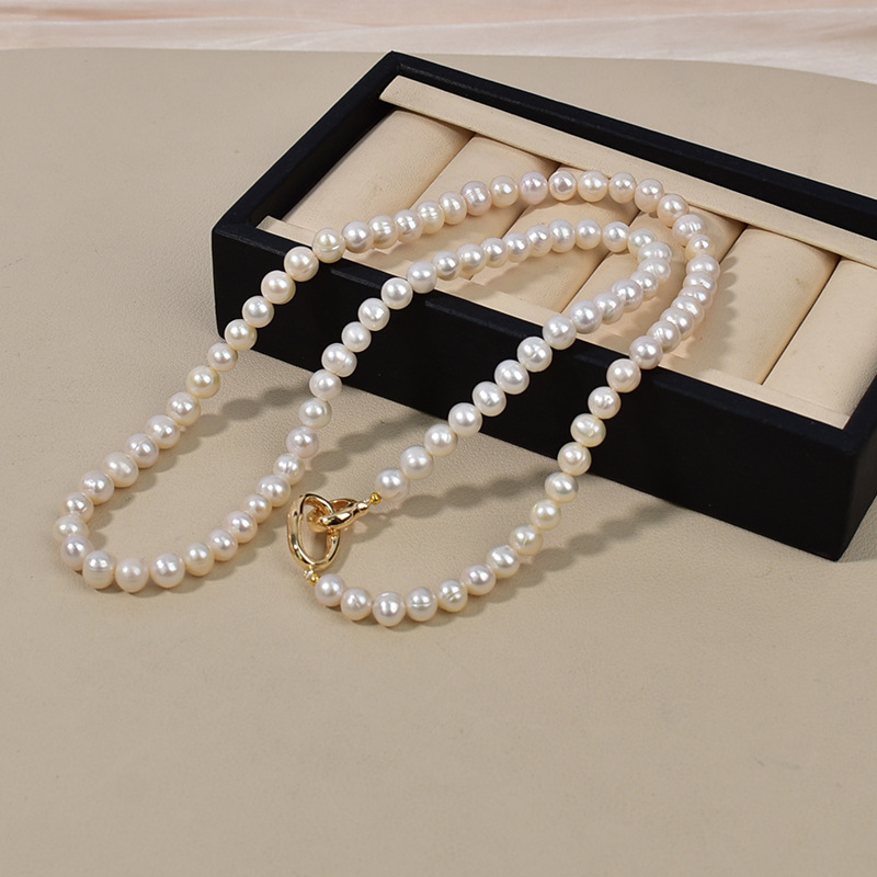 Collier en perles d'eau douce Pull, perle d'eau douce cultivée, avec laiton, Légèrement rond, Placage, bijoux de mode, plus de couleurs à choisir, protéger l'environnement, sans nickel, plomb et cadmium, 6-7mm, Vendu par 60 cm brin